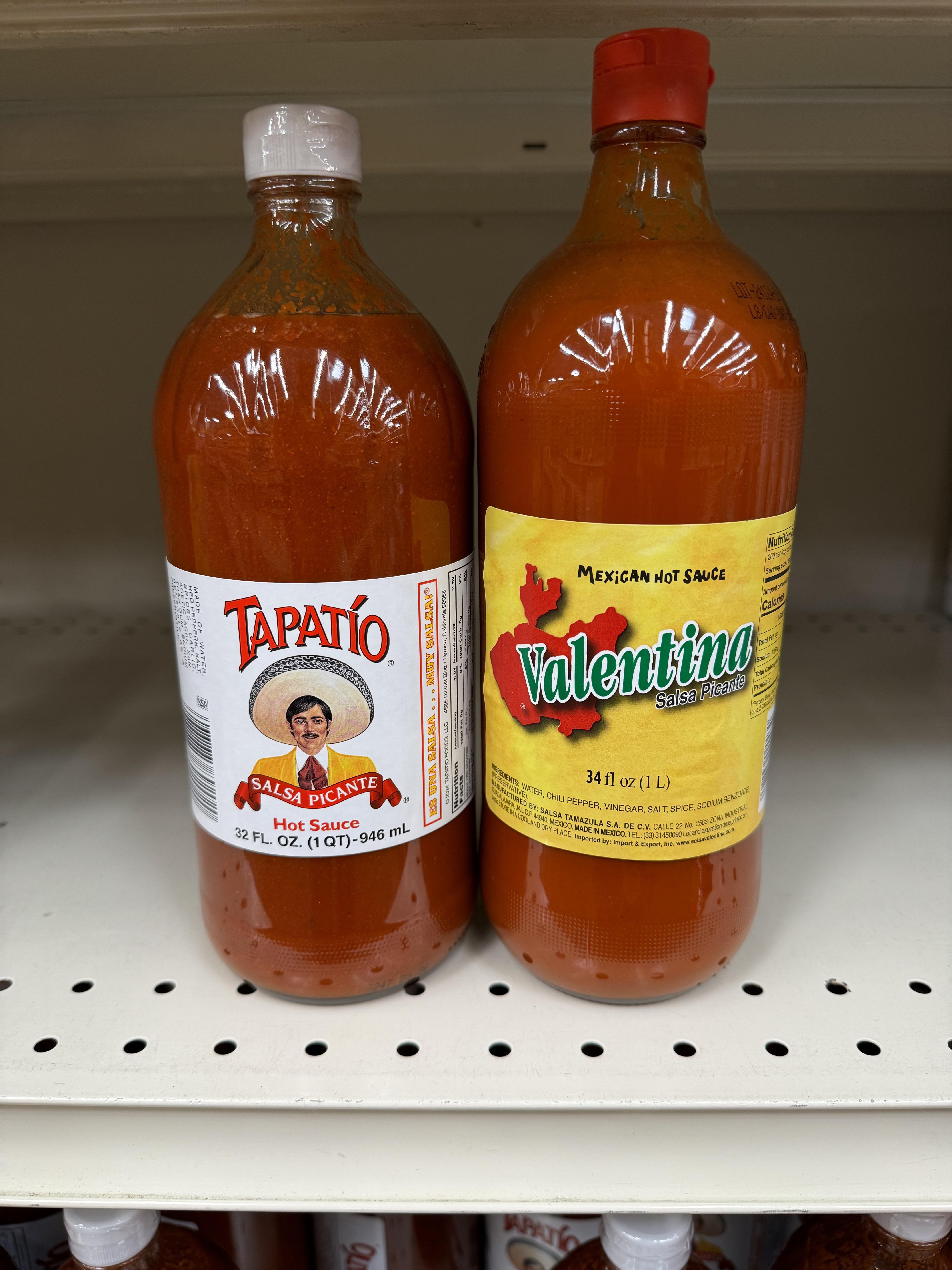 In this debate, Tapatío wins. You have to put it against the black label Valentina. Then it’s a real debate. I prefer the black label Valentina over Tapatío, but they are both staple sauces