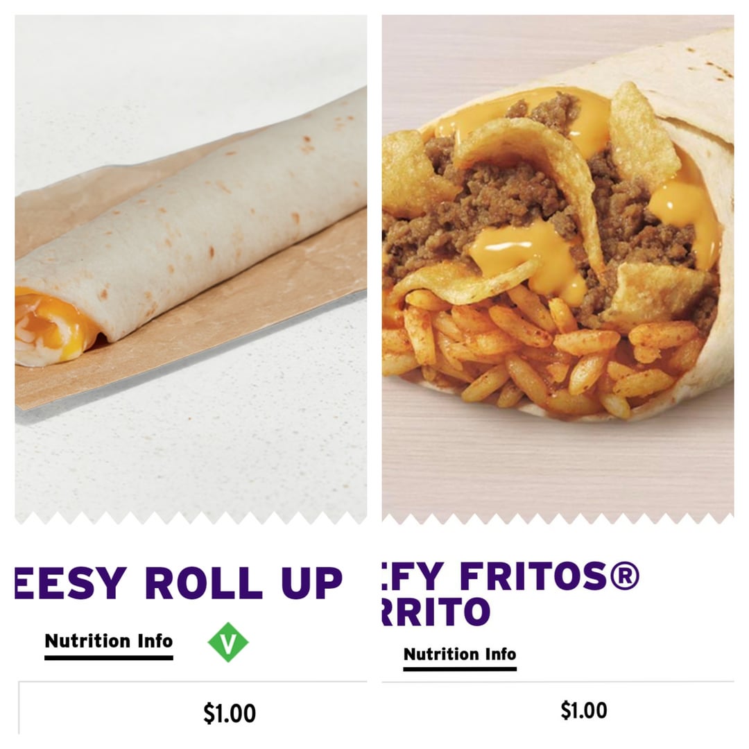 I LOVED the Beefy Frito Burrito. For $1 I could afford two and it filled me up. The cheesy roll up is half assed imo. There's hardly any cheese on them. Complete greed. by UpsetEmergency5248 taco bellWrite A CommentYou must be logged in to post a comment.
