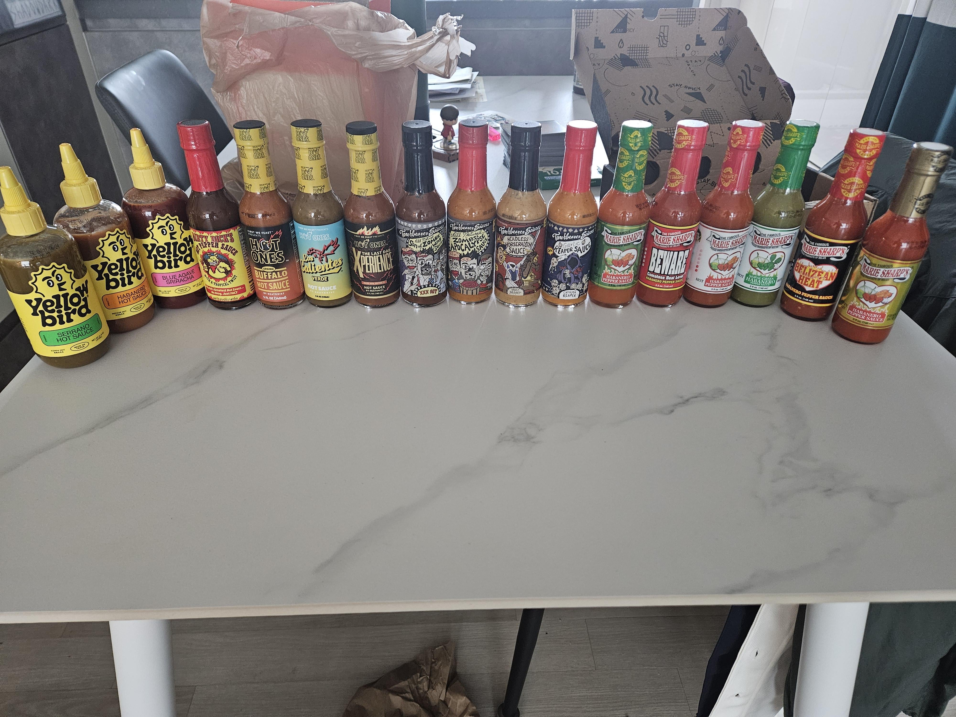 Couldn't help myself at lunch and tried the yellow bird ones… good flavor but need a bit more oomph in the spice department. Having fajitas tonight, which would you all try first?