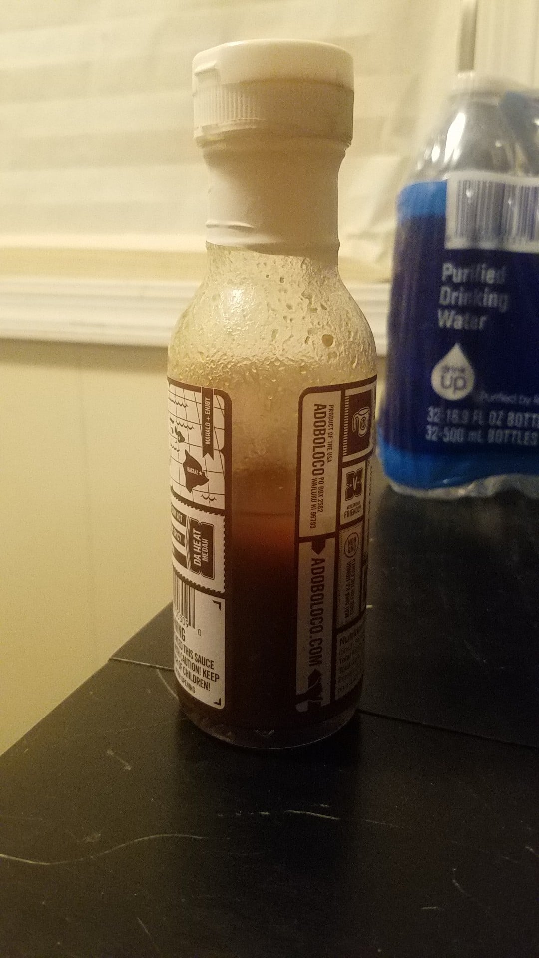 I knew I wasn't crazy and so I started digging through old photos and found these from September 2017 when I bought my first trial bottle. I loved it so much, I ordered a dozen bottles two days later when I finished the trial bottle. But if you look at the pictures closely, you can see that I was also correct in my memory of the sauce. The bottle cap was wider with a gurthier neck and the sauce was more "watery" than thick. It definitely had a different flavor than the current sauce does. I loved the flavor SO MUCH! I remember trying it on a chicken sandwich and had to resort to pouring the sauce on the bun so that it could soak into it and I could visually gage how much I'd used, since I couldn't tell how much I had poured when adding it to the toppings or meat itself.