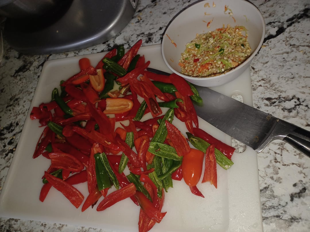 2) cut and deseed peppers