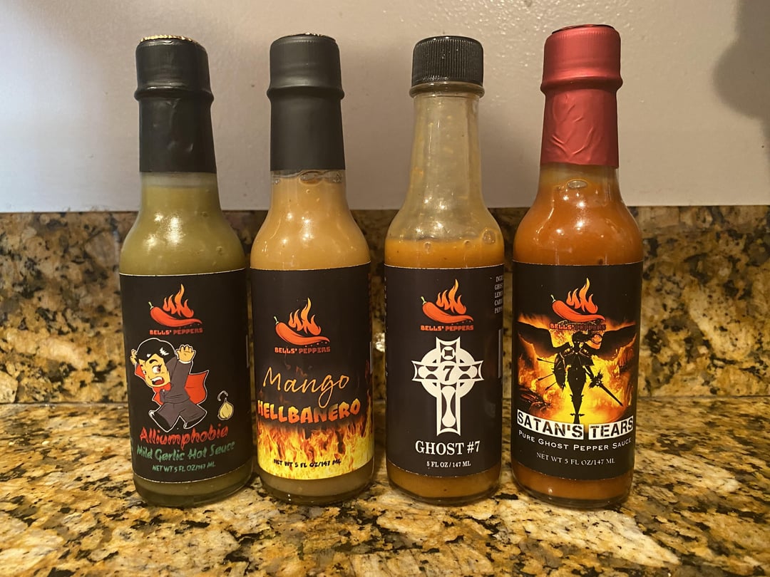 Satan’s Tears: Basically ghost pepper juice. Flavor is very similar to how I described Ghost #7, but it substitutes the subtle flavors for a much bolder ghost pepper flavor. Just look at the color difference between this and Ghost #7. I’d say the heat goes up a level or two compared to Ghost #7. Still edible enough to put on anything.