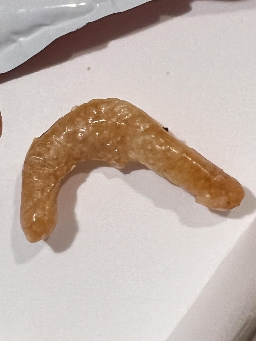 So it’s actually kind of big. Like 1 1/4”. Three of the photos are extreme close ups. It’s fried. I cant definitively say it’s a meal worm but it looks like one.by Brilliant_Climate_41 taco bellWrite A CommentYou must be logged in to post a comment.
