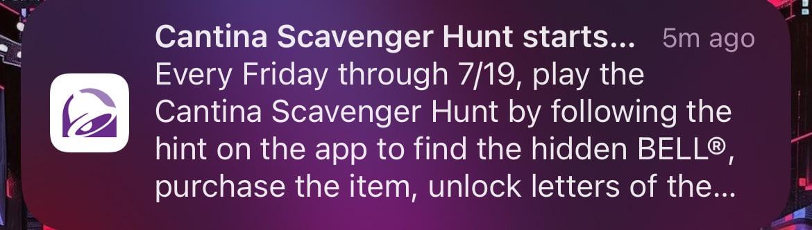 Wow, a scavenger hunt that requires purchases to get only 10% off the cantina menu! Ingenious