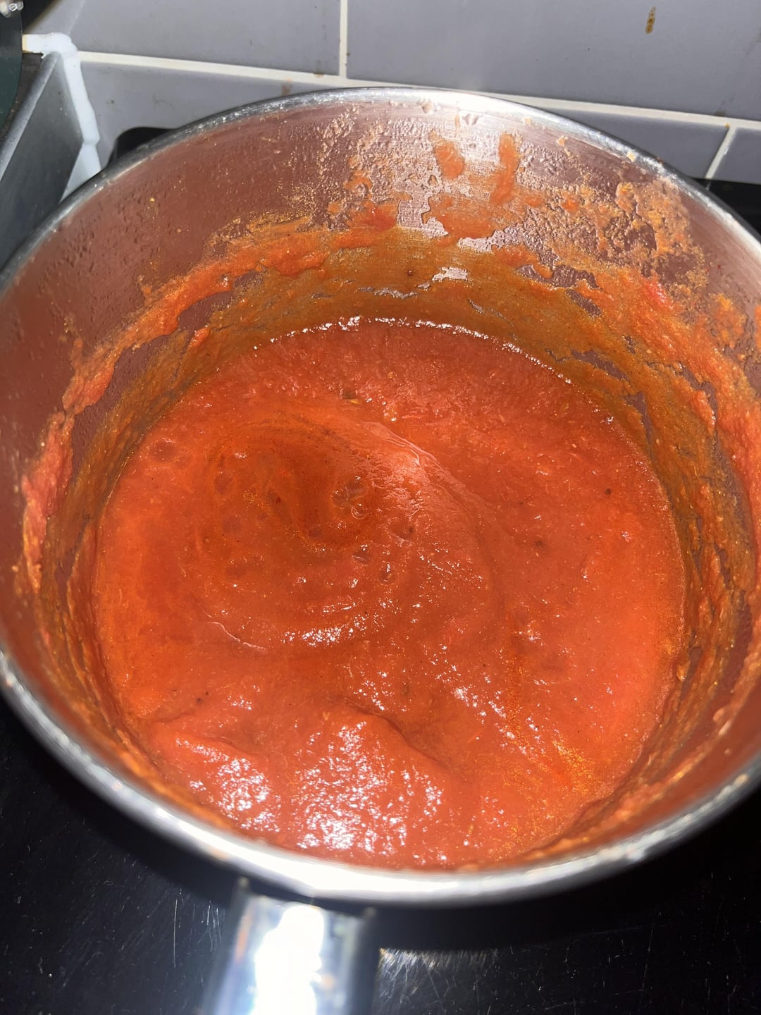 Simple taster curry; tinned tomatoes, half an onion and two cloves of garlic, simmered an hour on low and blended till thick and smooth. Two tea spoons of curry paste. It’s not kicking me in my throat yet but my partner was coughing when she came in the kitchen. Might have to add some more for the chilli sweats.