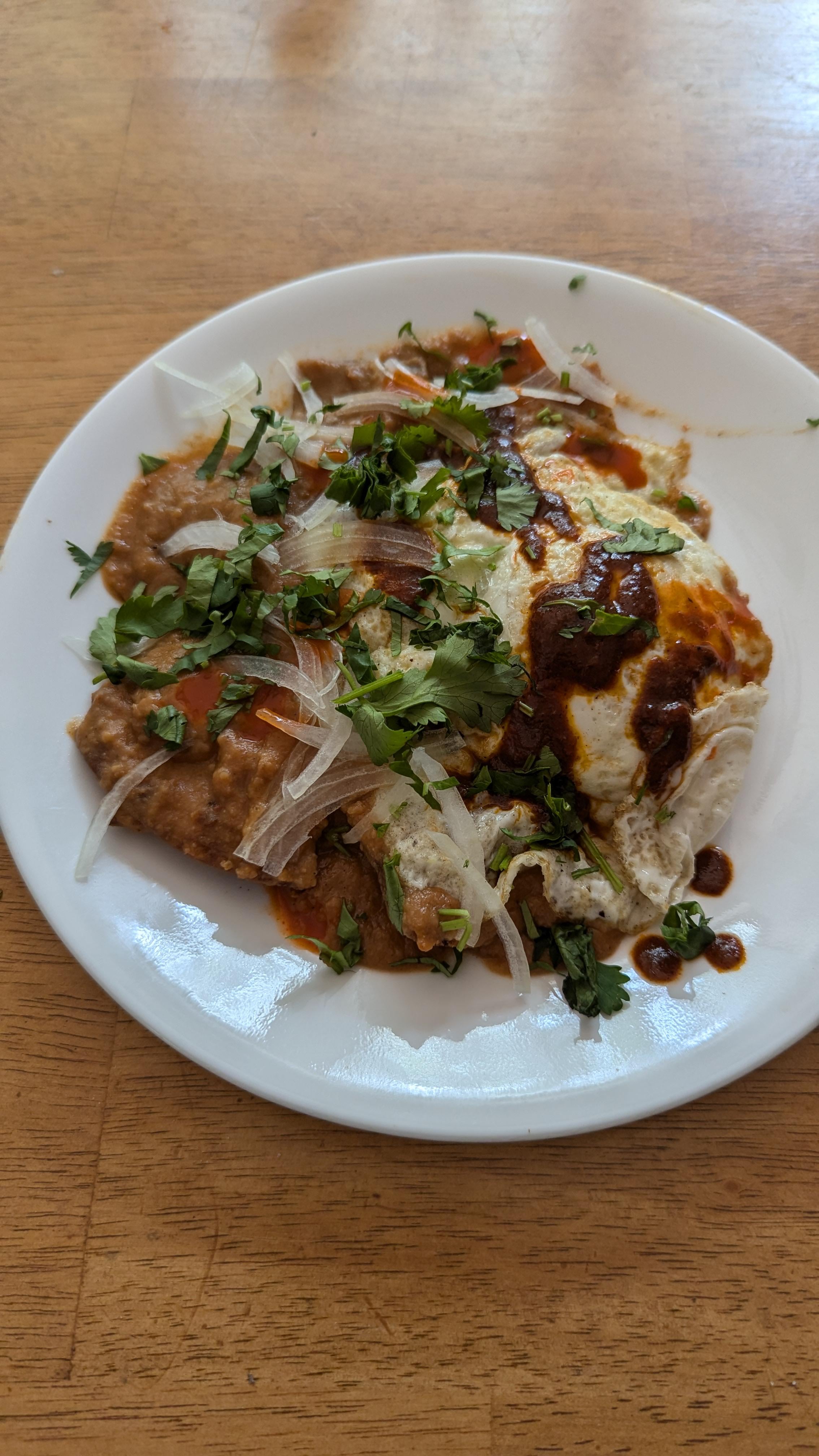 Fried stale tortilla, over easy egg, bean sauce. What is this dish called? Frijolequiles? 😉by Background_Fuel_1428 Write A CommentYou must be logged in to post a comment.