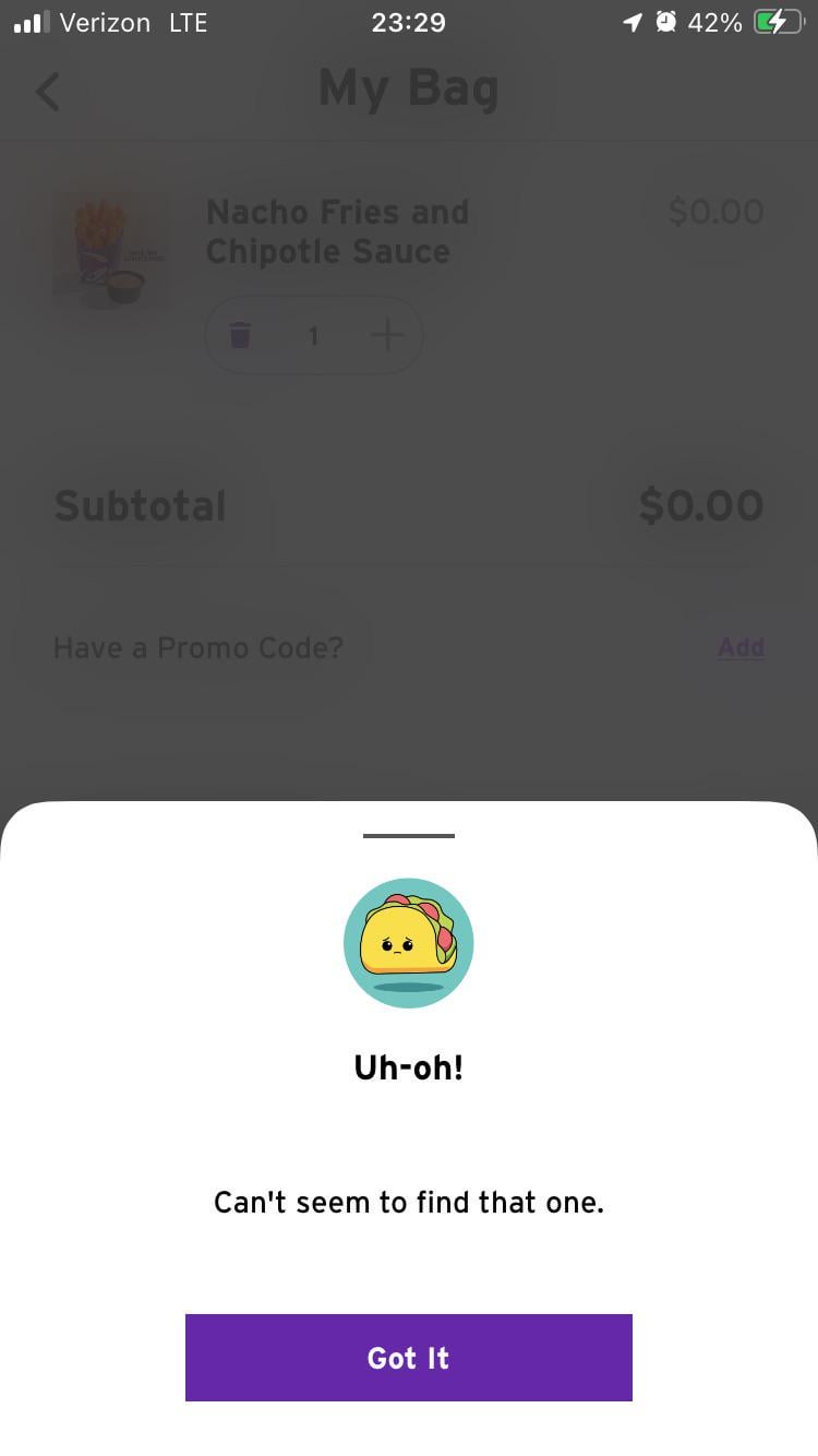 Uh-oh, at every location within an hour of me.by jeeves585 taco bellWrite A CommentYou must be logged in to post a comment.