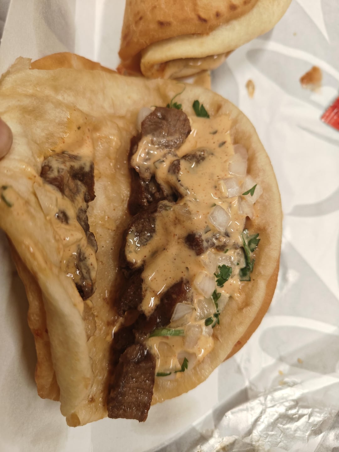 Mine came extremely dry. I wish they added a cheesy sauce. I swapped the jalapeno sauce with sour cream and took off the cilantro and onions. It’s cool you get two for the price but I think this item was a miss. 6/10.