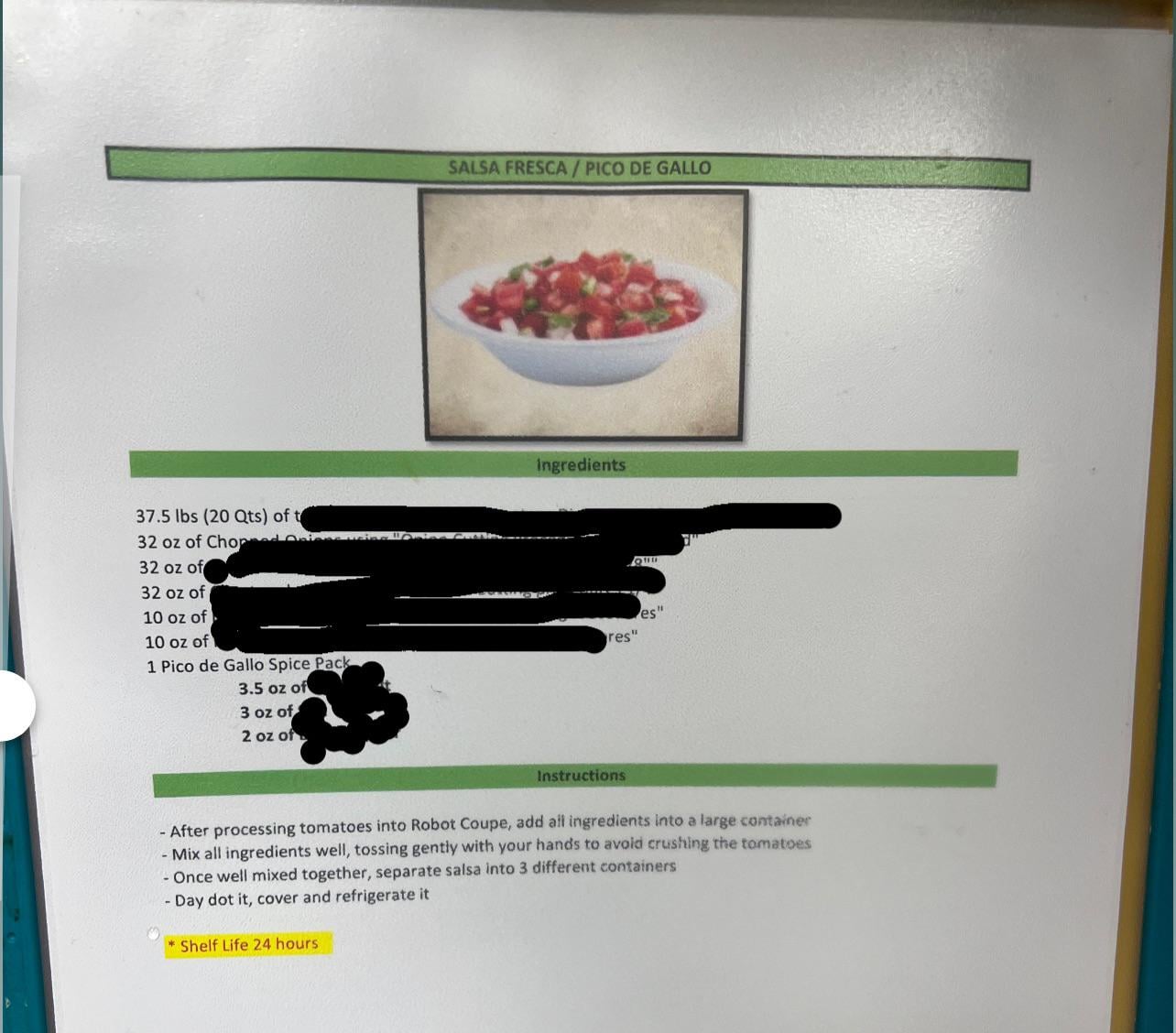 So for more content this is from a restaurant I work at and it’s my favorite salsa. I do not plan on giving/selling the recipe or giving/selling what I make so I don’t think it’s illegal. I just need help making it into personal portions.