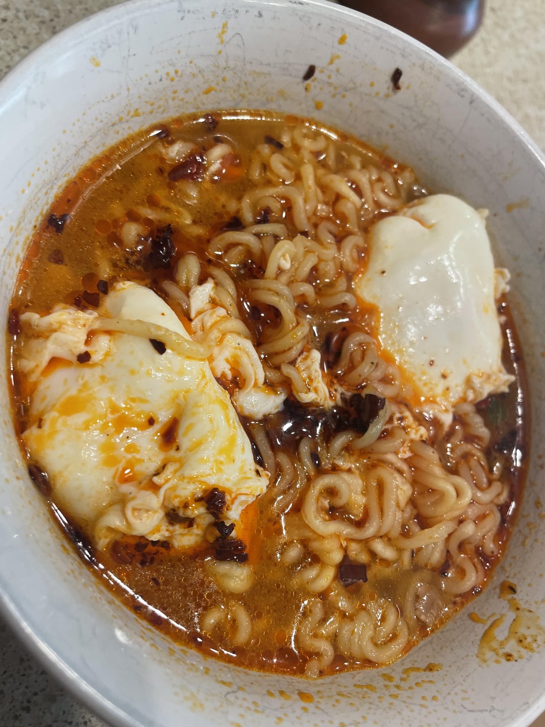 Follow-up post: Shin spicy ramen with a couple poached eggs and Lao Gan Ma (as recommended by this sub!)