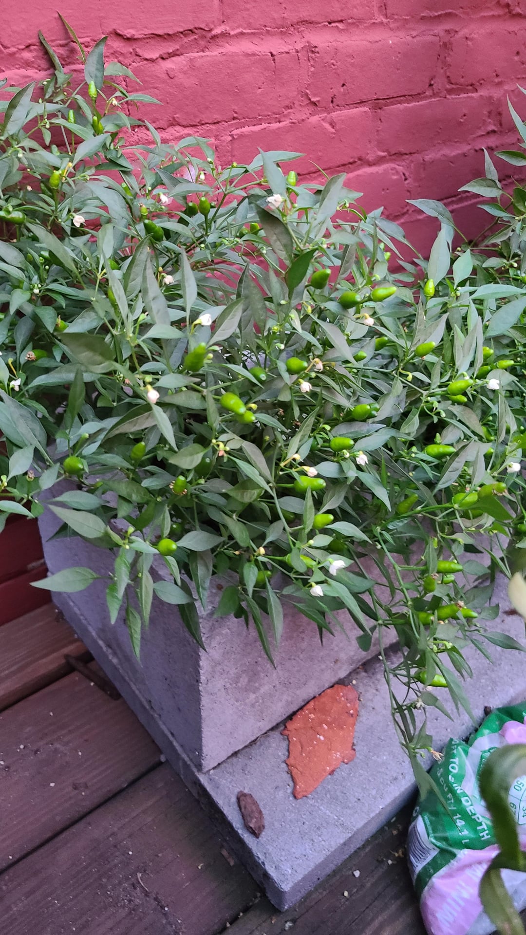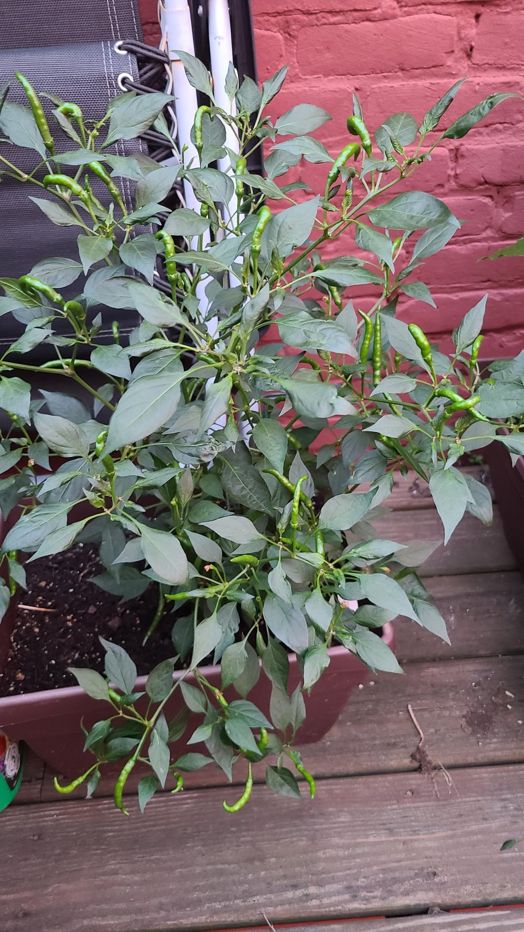 Growing some spicy peppers and I'm so happy to see my first Carolina reaper growing well. I love spice but have never had one before. I'm also growing Cambodian hot peppers, Thai hot peppers, and classic jaleps, which are all going nuts! This particularly hot, MA summer has been good for them I guess 😃🌶