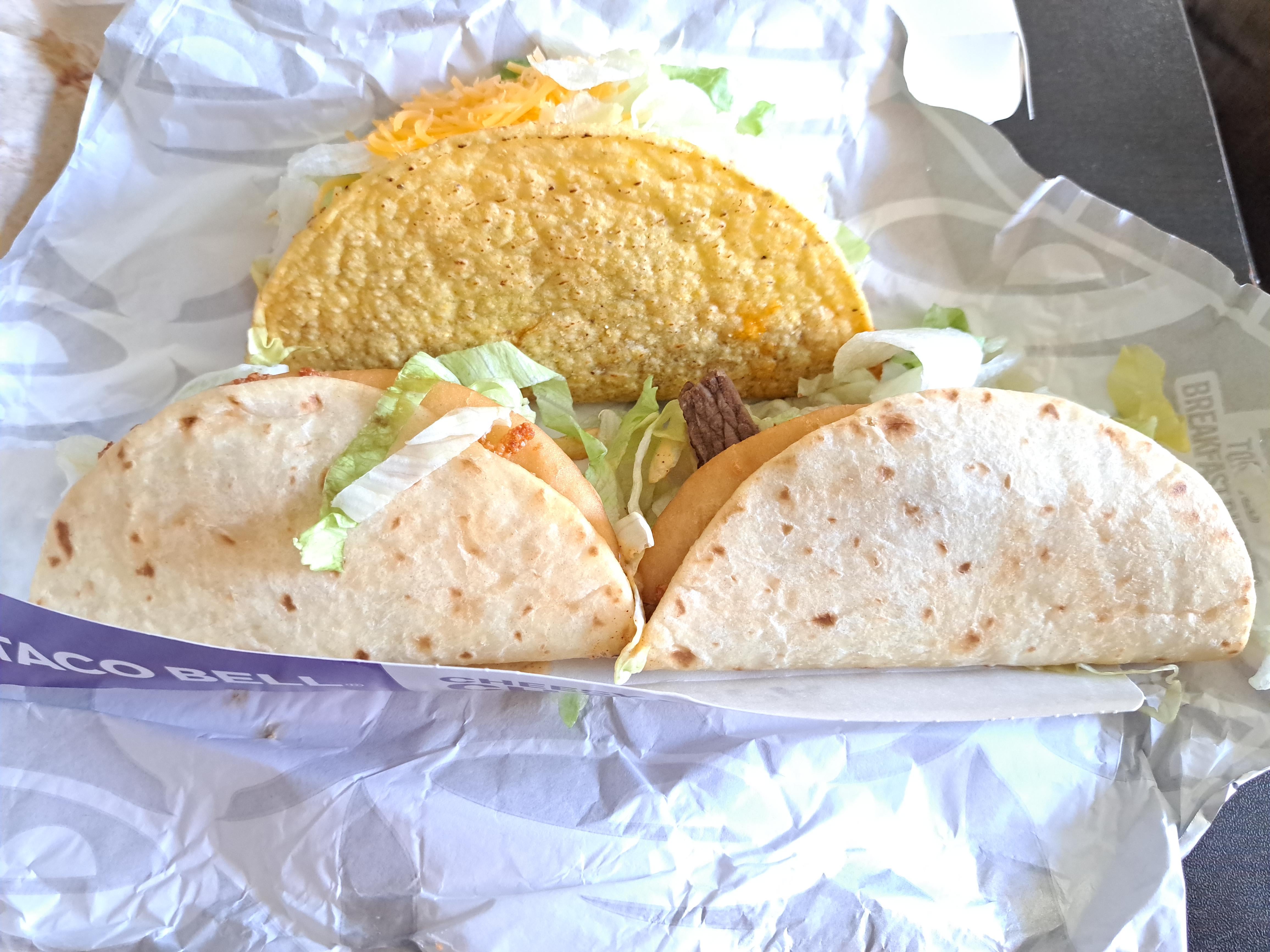 Smaller but not too bad. Out with the onion/cilantro and in with lettuce and paid the adder. Very little meat and was thick but mostly shell. Thick breading but flavor was nice. Now the Taco was packed with beef and a much better value.