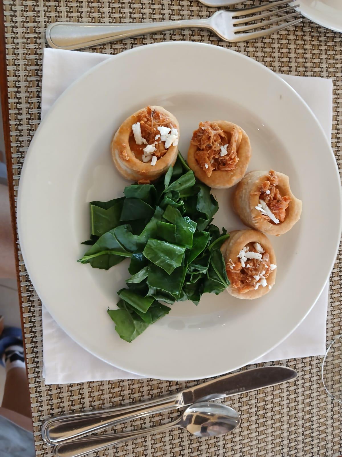 Vol-au-vents de cocinita pibil con chaya
