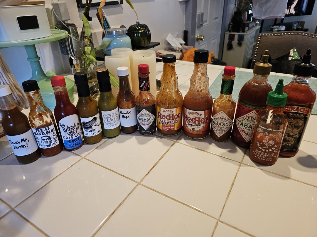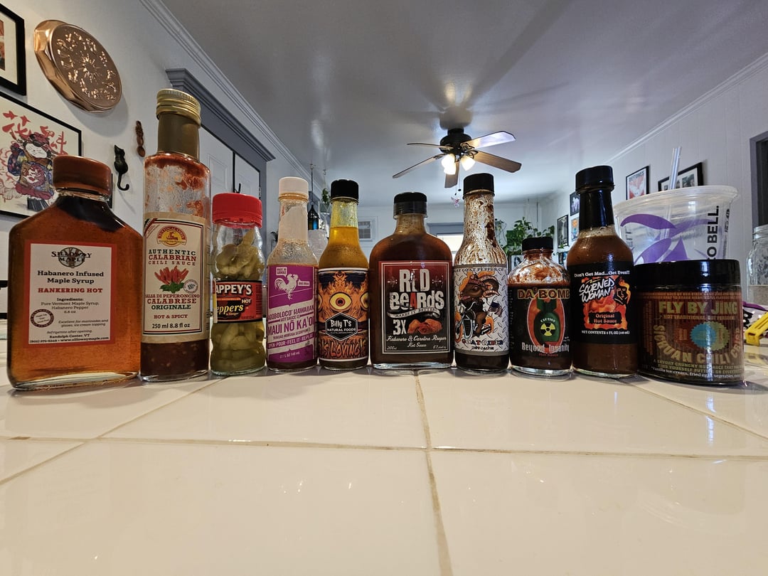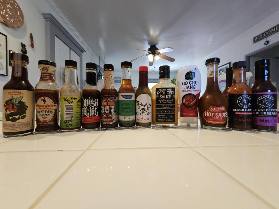 Doing some pantry and fridge cleaning, so thought I'd share my addiction. Funny enough, I mostly stopped buying sauce the past few years, but people keep giving me sauces. On top of that, I've been making my own fermented sauces (all the left side of the first photo), so I'm really struggling to get through these. Don't be like me. My beer fridge is half hot sauce.