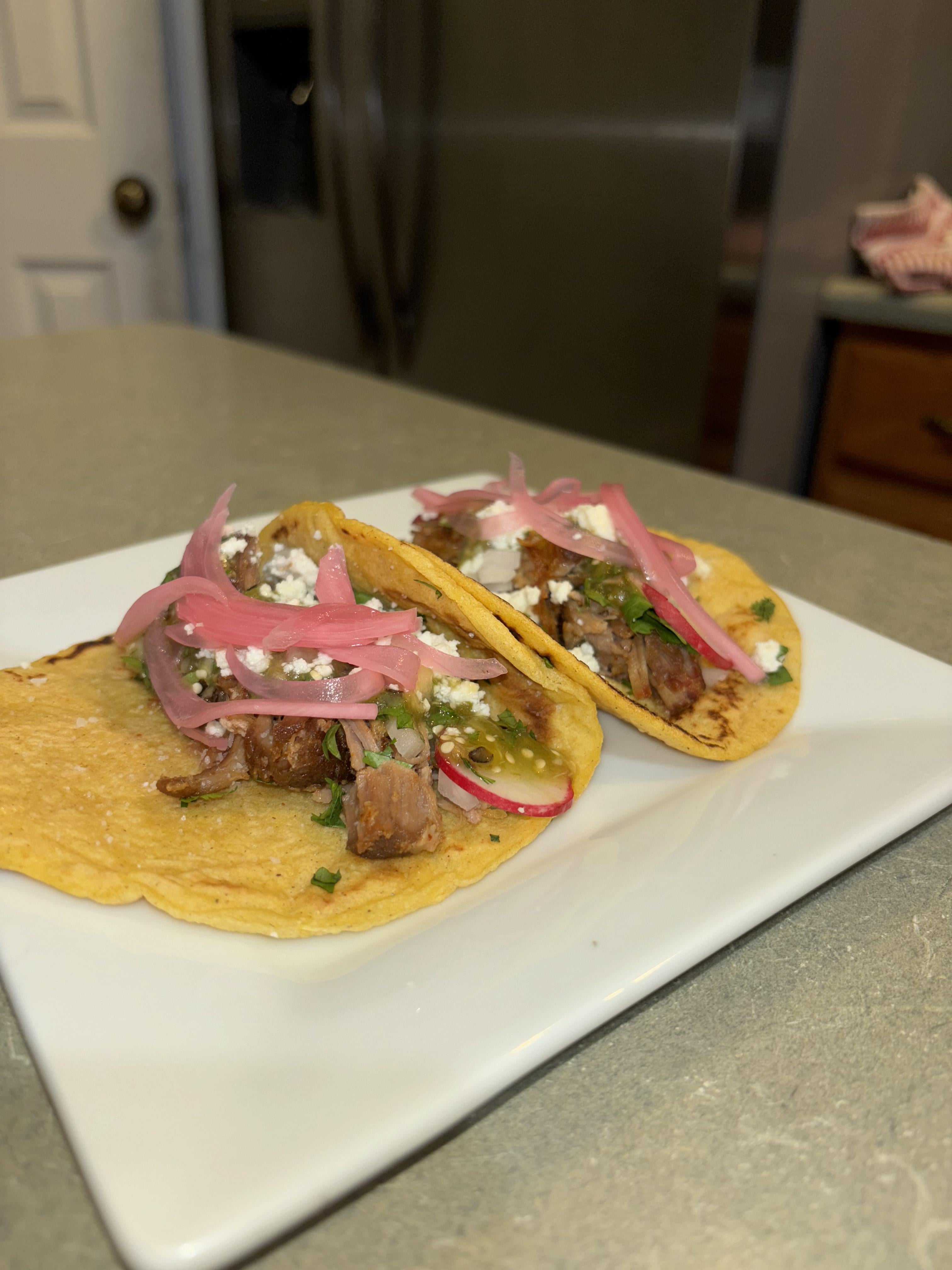 Carnitas, white onion, cilantro, radish, salsa verde, cotija cheese, and pickled red onionsby twavy01 Write A CommentYou must be logged in to post a comment.