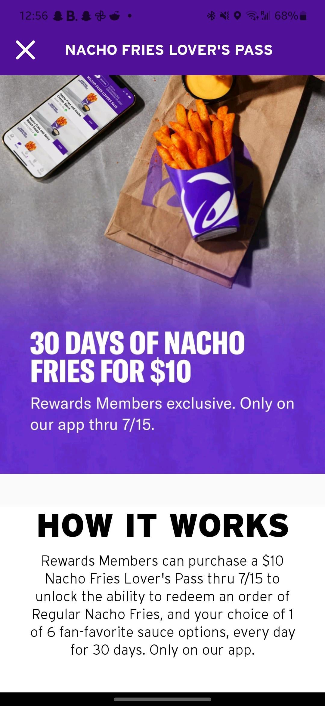 I saw the nacho fries pass in my taco bell app rewards today, and I really wanted to buy it. However, I am on vacation at a foreign country until August. Am I able to buy this pass now and start the promotion when I come back?