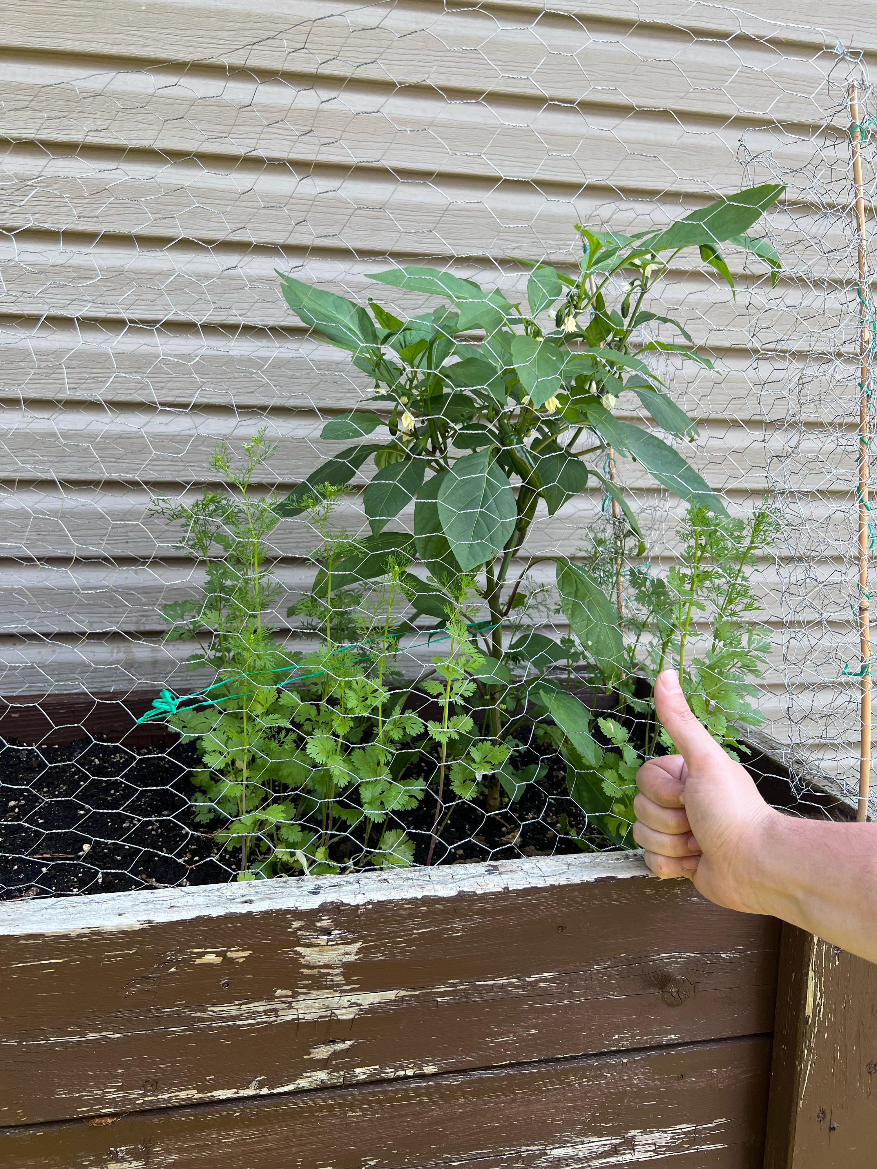 This is my little set up as I just moved into my first house with my girlfriend. We have a pretty nice sized. Backyard as well, so I’m looking to build some raised grow beds when the weather starts to cool down a bit. Surrounding the jalepeno plant is cilantro.
