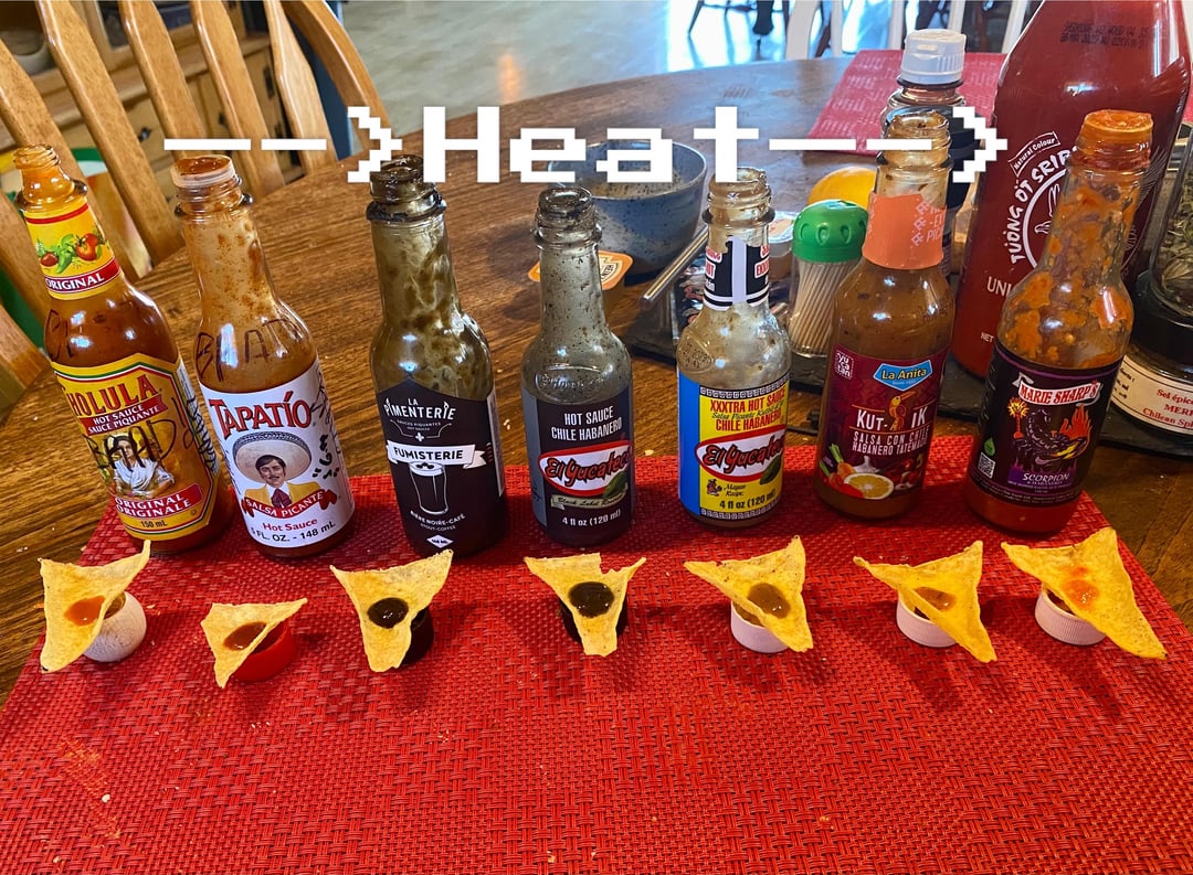 Eat with hot sauce oriented up. Chew well. Wait 1-3 minutes with a few sips of beer and two chips to cleanse palate. Repeat.