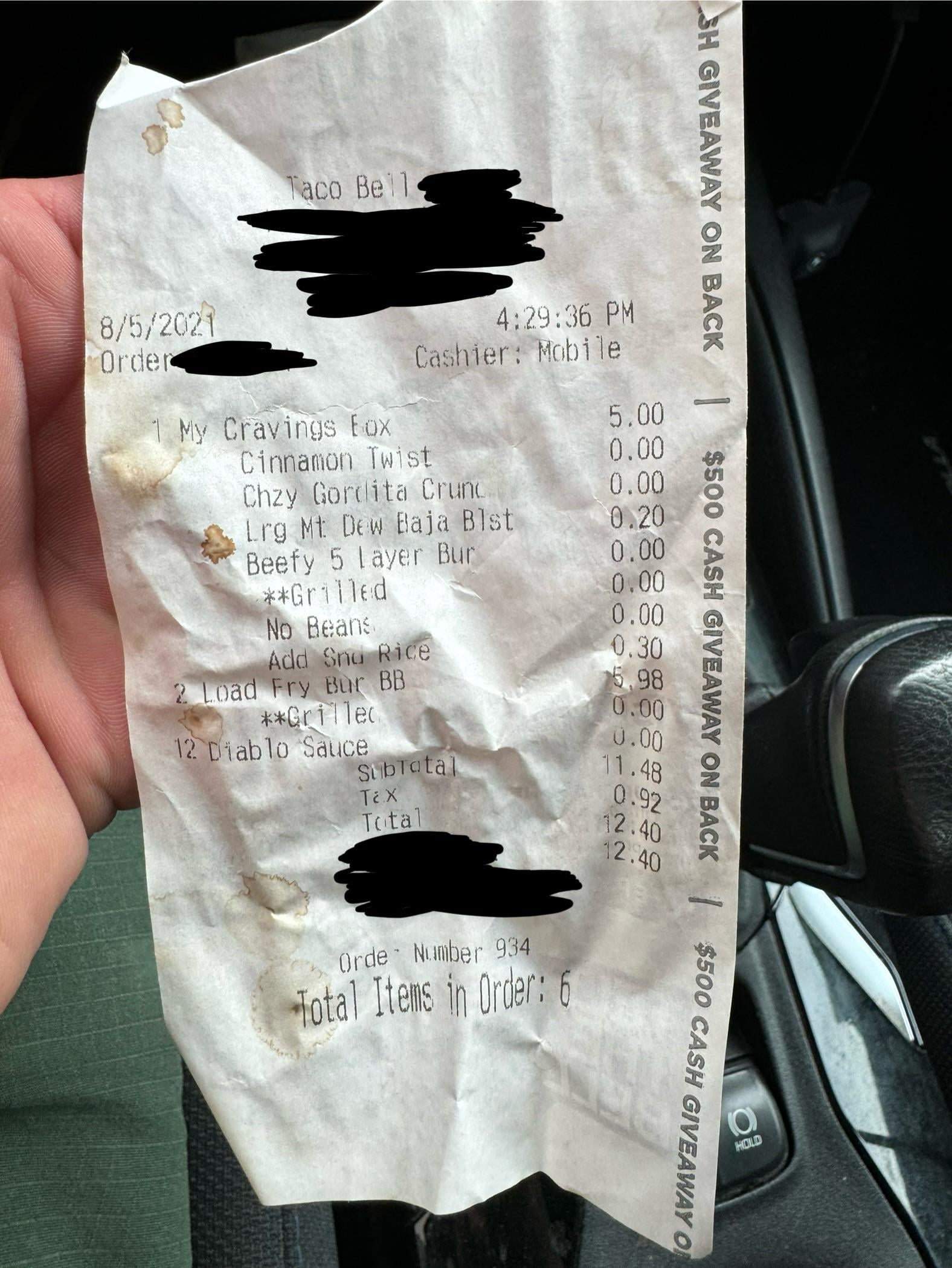 Receipt I found today while in the tacobell drive-thru. (8/5/2021) by SCDD2010 taco bellWrite A CommentYou must be logged in to post a comment.