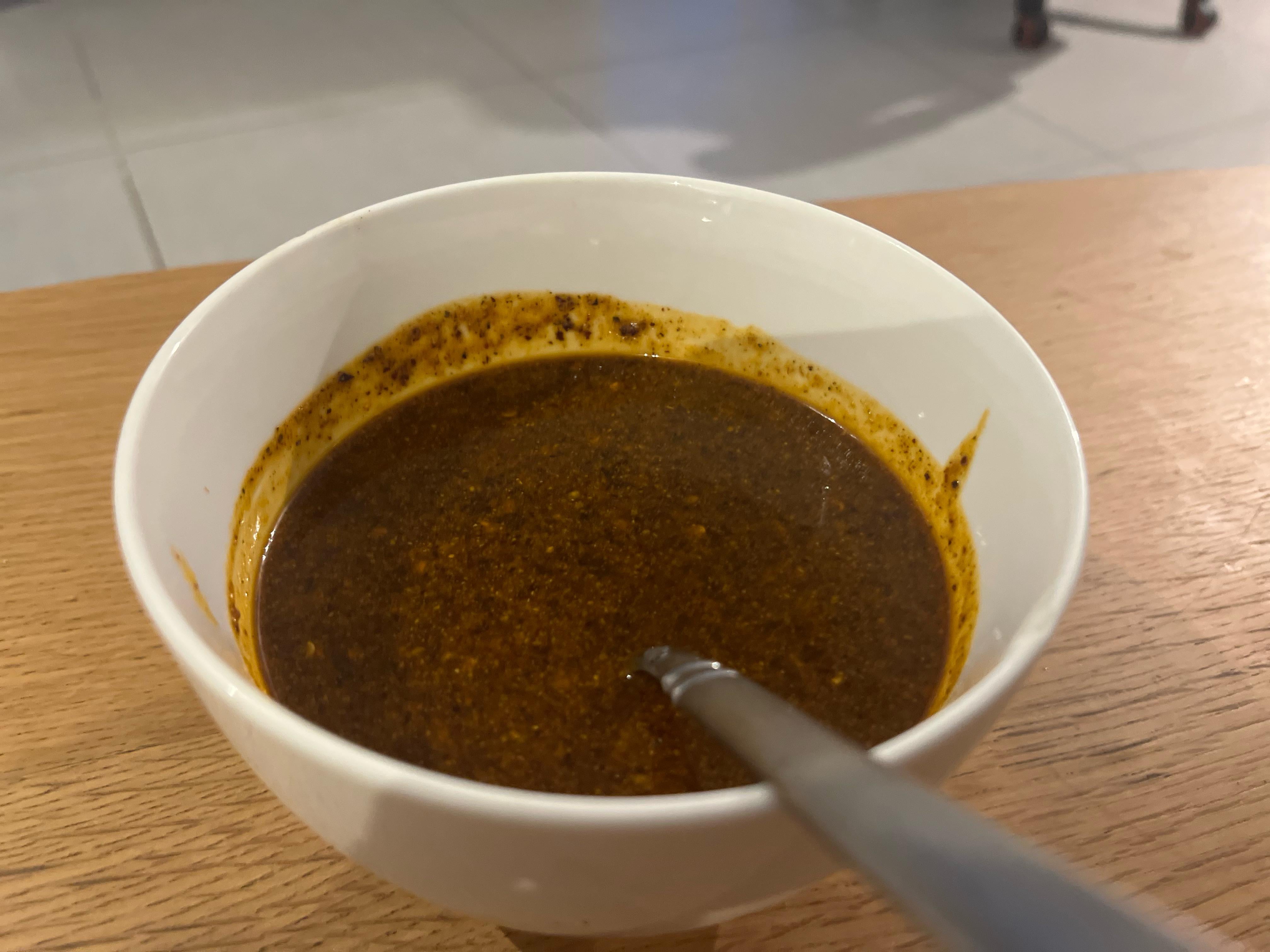 The result is spicy (but not overwhelmingly so) and fairly nut/seed forward. It tastes almost like a spicy chunky peanut butter or tahini.
