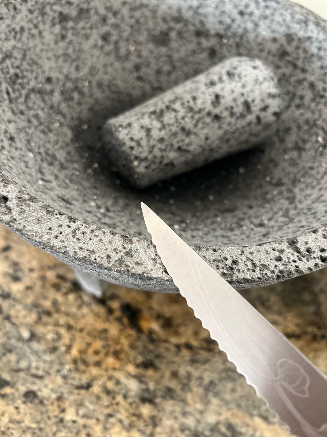 I did the vinegar test, no bubbling. It holds water great. Knife test in picture after wiping off dust. I asked my husband about the smell and he can’t tell what kind of smell it is.