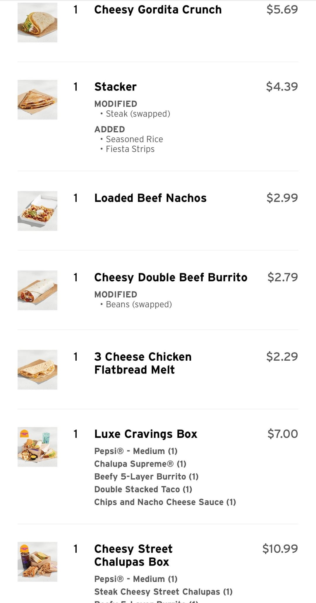 Got the cheesy Gordita crunch free.Rate the order.FAQ: How much do you weight? 150-160Is this for one person or a family or four? It’s all for me Am I eating it all now or saving it for later? I am eating it all nowby lukiepukie11 taco bellWrite A CommentYou must be logged in to post a comment.