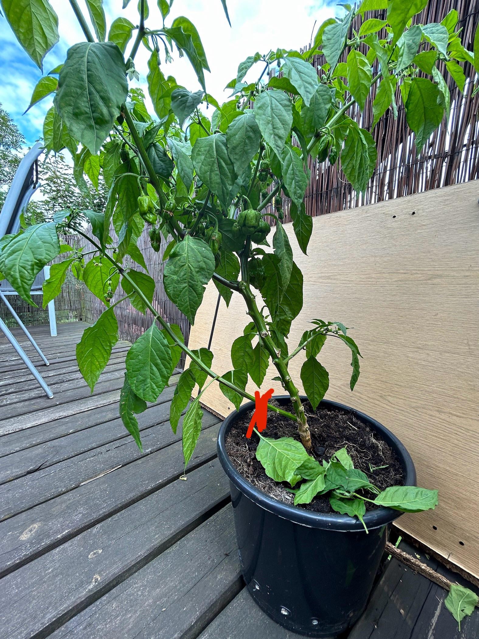 Can I cut this if there’s like 2 habaneros and more are on other stick?by Zealousideal_Push230 PepperPepper Lovers 6 Comments tw2368 1 year ago Tomato cage is leaning bad Simp3204 1 year ago Give the homie some support stakes Scrappyz_zg 1 year ago Stake it and don’t pick any leaves off charleyhstl 1 year ago Trimming that lowest branch. It will force the plant to focus on the main part of the bush PortlandQuadCopter 1 year ago Go buy some stakes and secure it. Necessary-Lab1779 1 year ago Re-pot with some compose. It’ll be twice the size next year.Write A CommentYou must be logged in to post a comment.