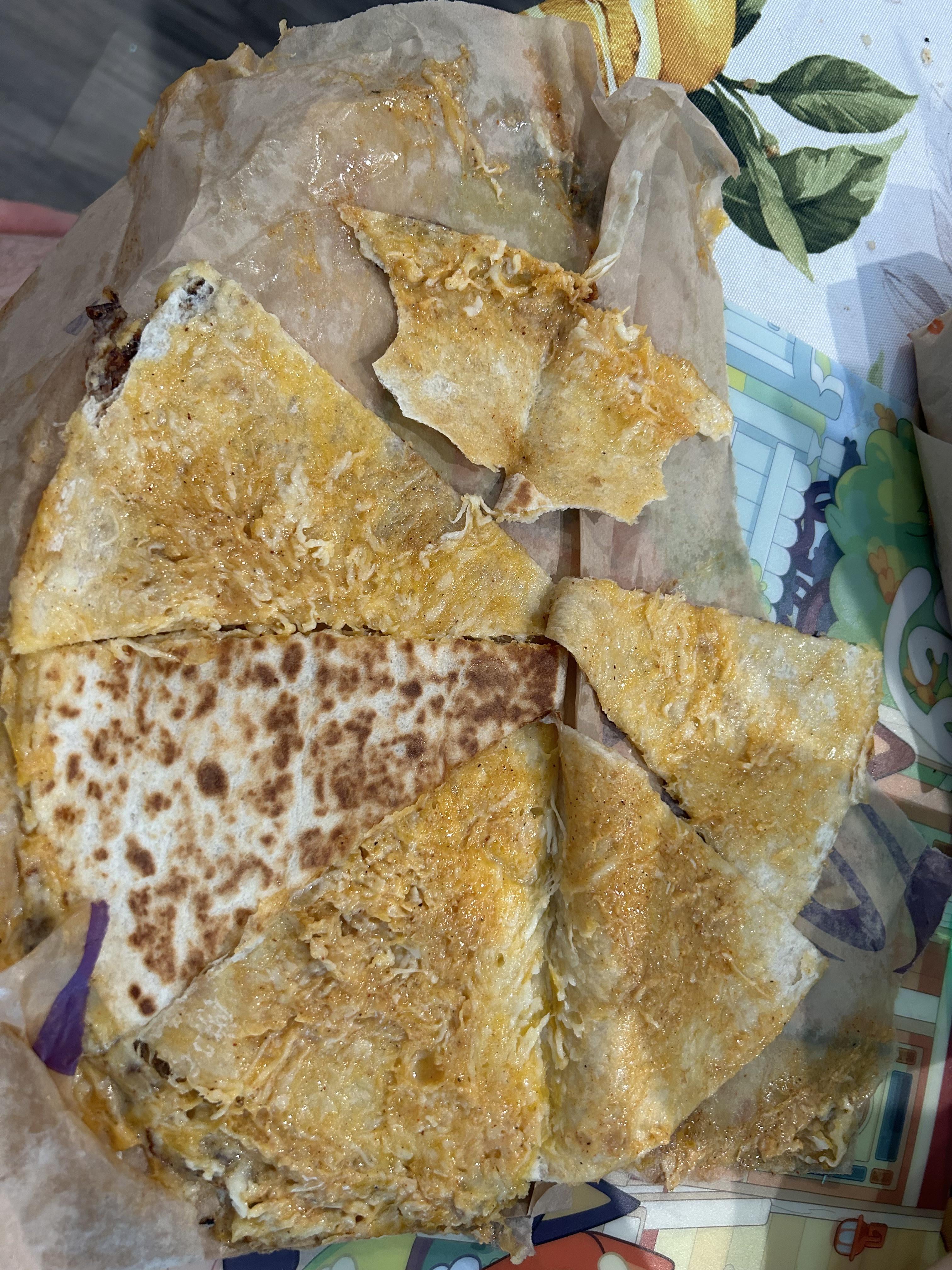 Ordered a cheese quesadilla and this is what I got…I’m a Bell guy, so this as close as I’ll come to a complaint. But like…. this is cray cray, so I had to say something somewhereby Tinker_Time_6782 taco bellWrite A CommentYou must be logged in to post a comment.