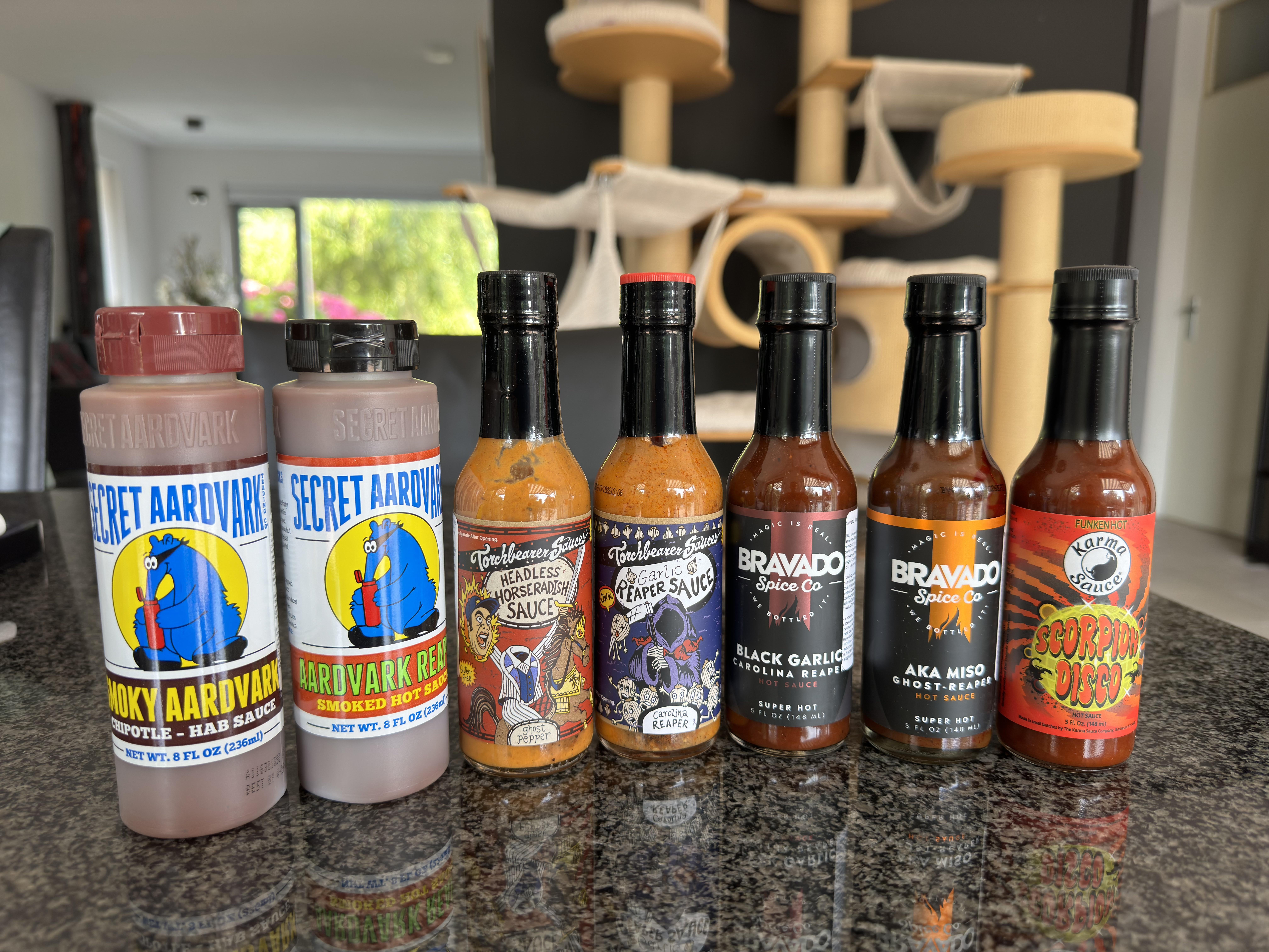 The rest are guesses based on ingredients, wanted to trybout sone reaper sauces, and I can’t have bell pepper (so the heartbeat sauces were a dud sadly… wish everyone would label those correctly instead of just ‘red peppers’)