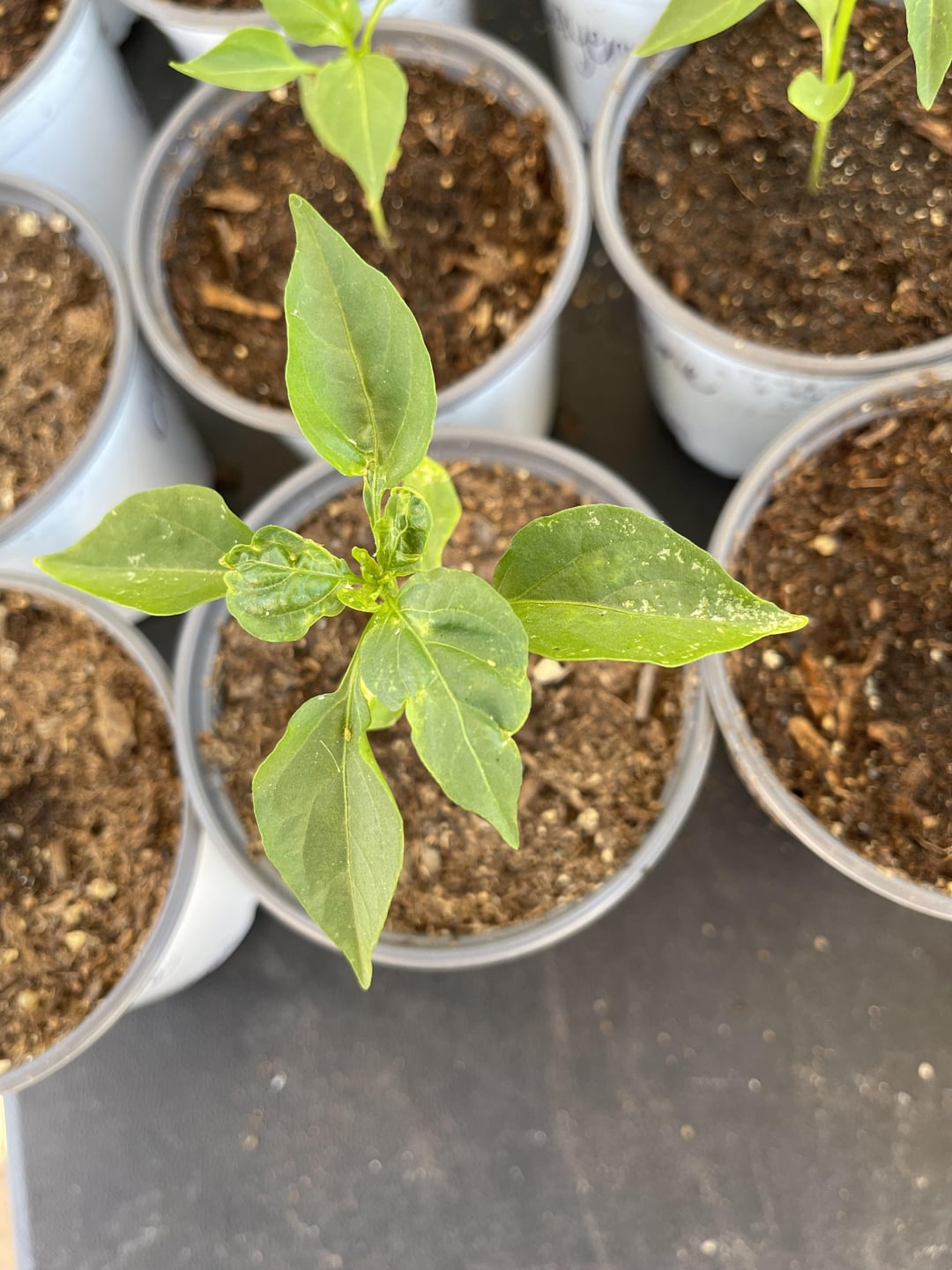 Hey guys, this is my first time ever growing peppers. I’ve been getting some of these wrinkles on a few leaves and I assume it’s overwatering but I don’t know how to tell for sure. It’s been consistently 90 here in SD so I’ve been watering them about 2 sometimes 3 times a week once the top once of soil gets dry. I also read about calcium deficiency but again, this is my first time. These plants are currently hardening and are up to 4 hours of sunlight starting from sunrise. As for the white spots I have no clue what they are. Thank you for any advice anyone can give.
