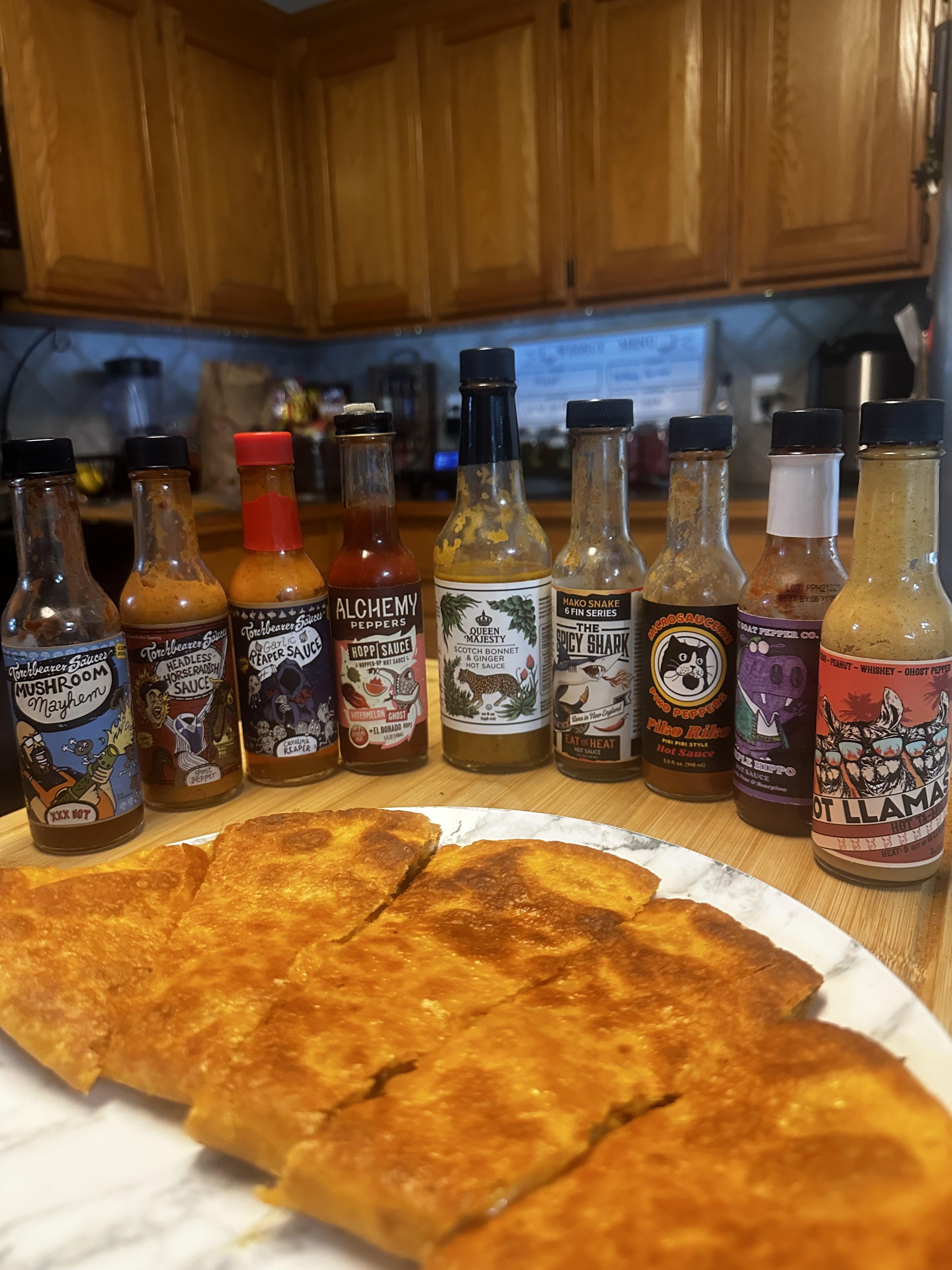 Made quesadillas tonight and now I’ve come to an extremely difficult decision.by fnhFiveseveN hot sauceSauce 5 Comments HGS 2 years ago Purple Hippo is phenomenal Axel_Foley14 2 years ago What a spread! I got mushroom mayhem on the way. Cannot wait. Garlic reaper absolutely kicks my ass but it’s so good I keep coming back for it. Krushed_by_Skill 2 years ago Ditto on the Mushroom Mayhem, stuff is fantastic. The Alchemy Hopp Sauce id pretty dammed good to. Healthy_Self_8386 2 years ago My guy loves his fancy labels gamefreak054 2 years ago I just tried queen majesty and it soooo good. I like the hab and coffee one better though.Write A CommentYou must be logged in to post a comment.
