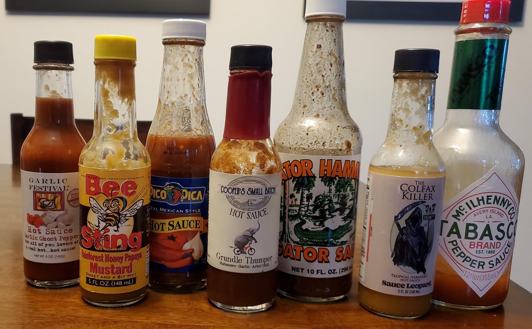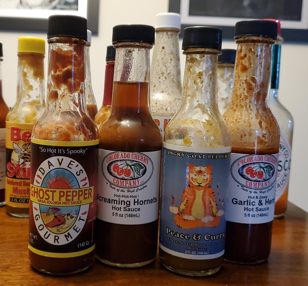 Current line up. My go to is the Garlic Festival, Garlic Ghost Pepper (it's my 3rd bottle in 2 years, locally bought at the Colorado Renaissance Festival). Wife loves the Bee Sting (she enjoys really mild stuff, NO heat). by FrankieSaysPewPew hot sauceSauceWrite A CommentYou must be logged in to post a comment.