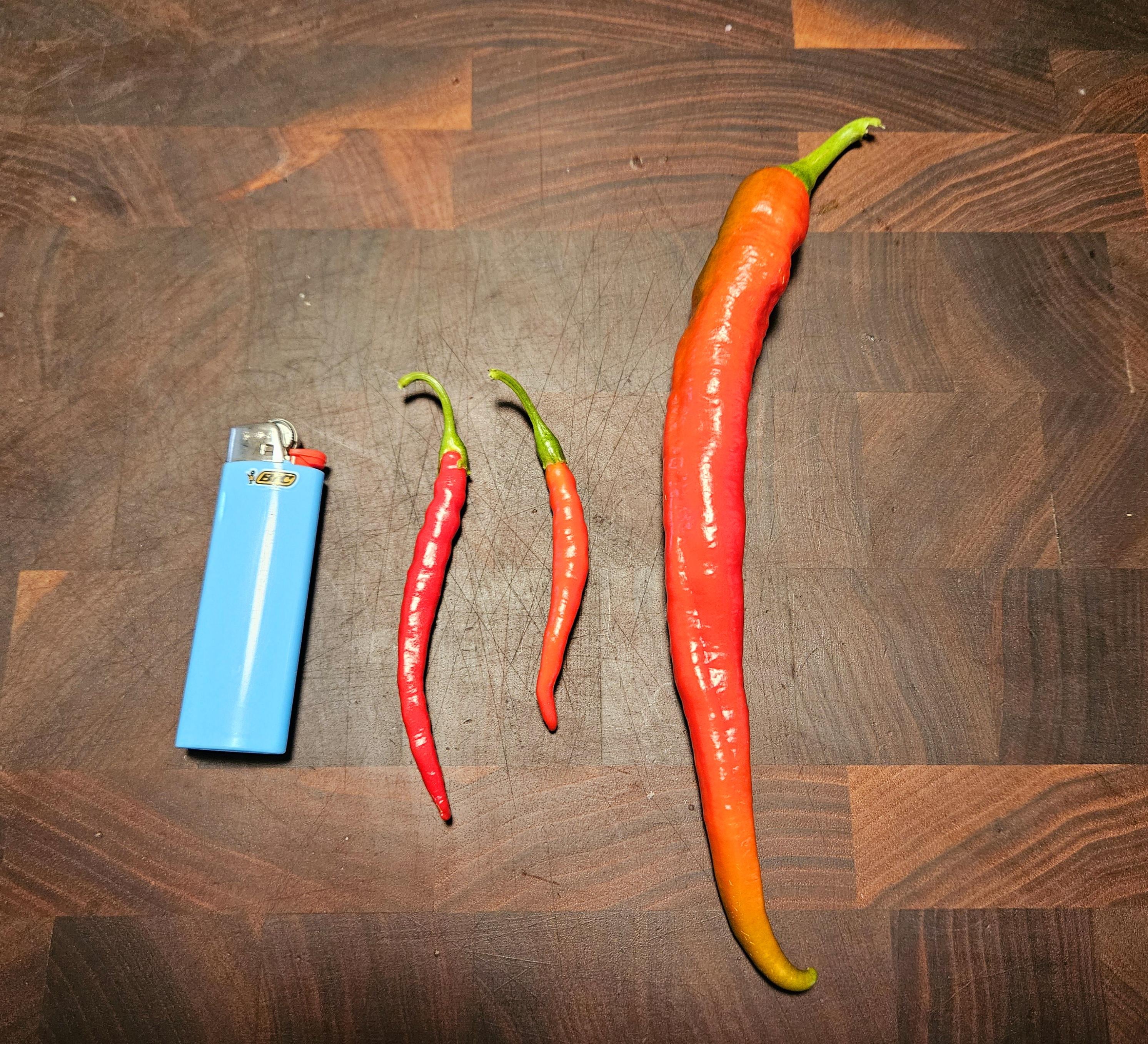 On the left, some local store bought plant labeled as Cayenne. On the right we have my first F1- Wildcat, started from seed in March, outside in May (zone 7b). I'll be harvesting a few dozen of these in a couple weeks. Some will be sauce, others will be smoked pepper flake.