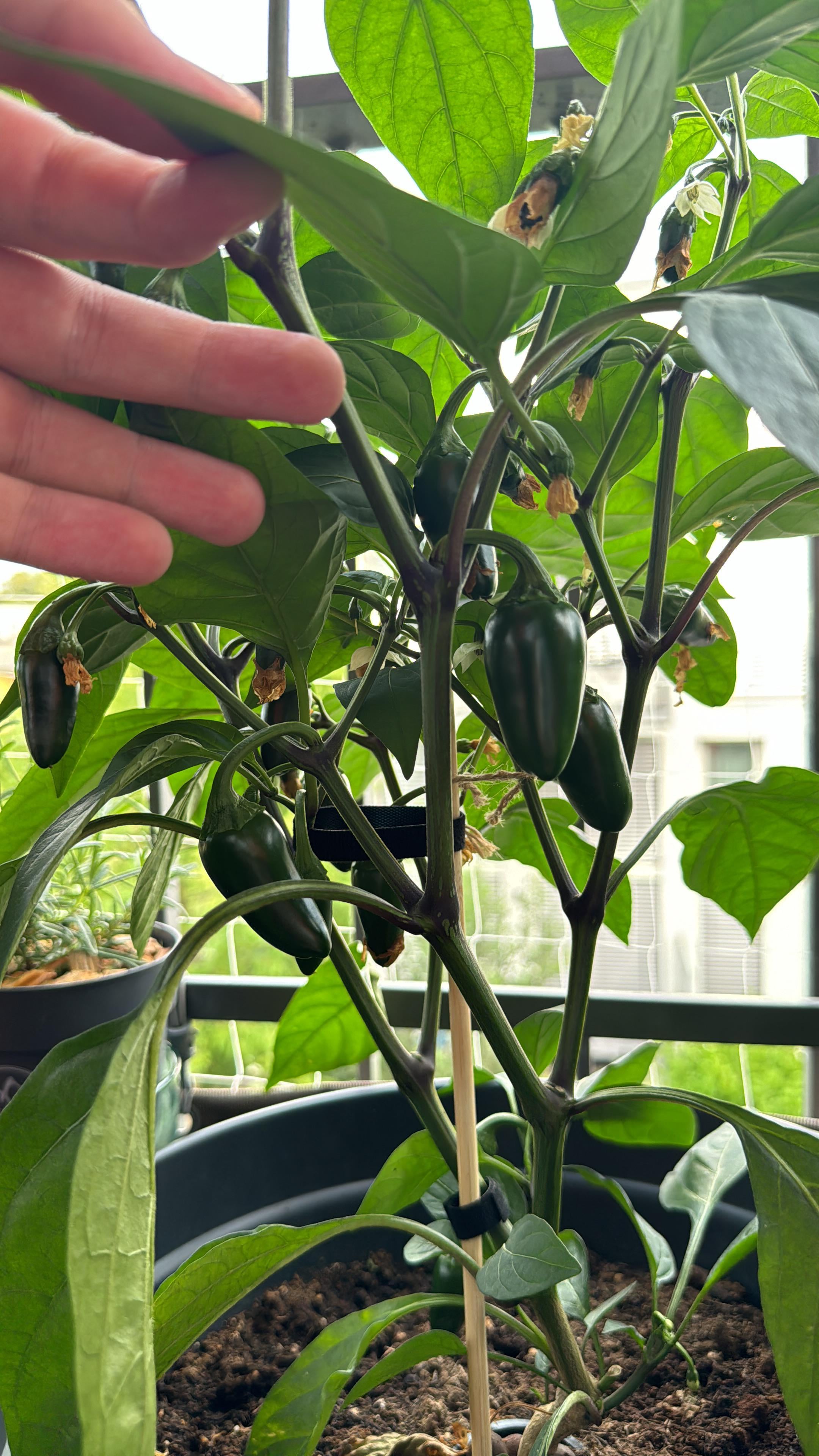 I have a 2-foot-tall jalapeño plant with 20-30 fruits, but they don’t seem to be growing very quickly or getting very big. I'm not sure how large this particular strain is supposed to get. Should I pick some of the fruits to allow the plant to focus more energy on the remaining ones?