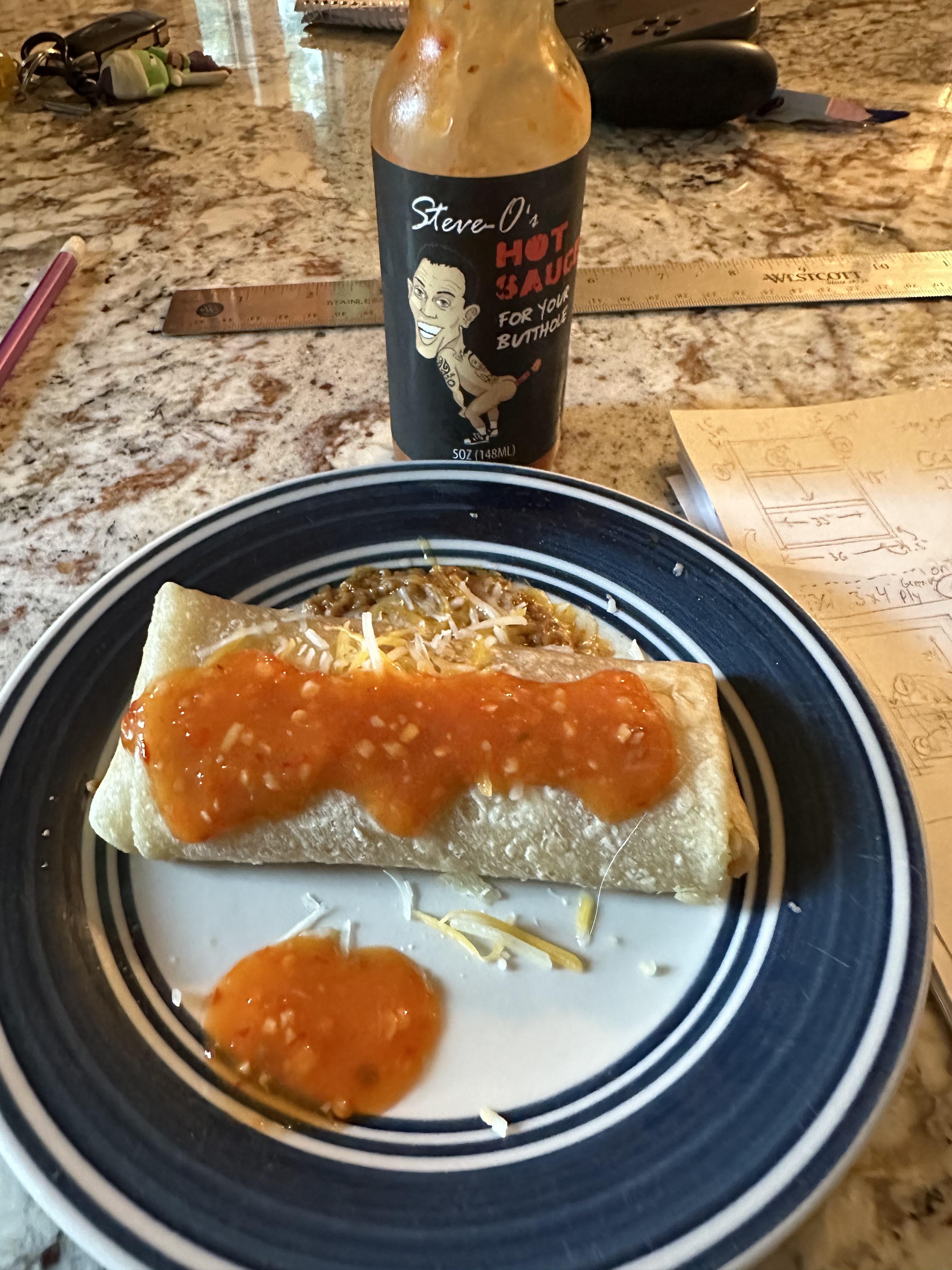 I’m sorry, but is that one of those frozen burritos in the like purple packaging?