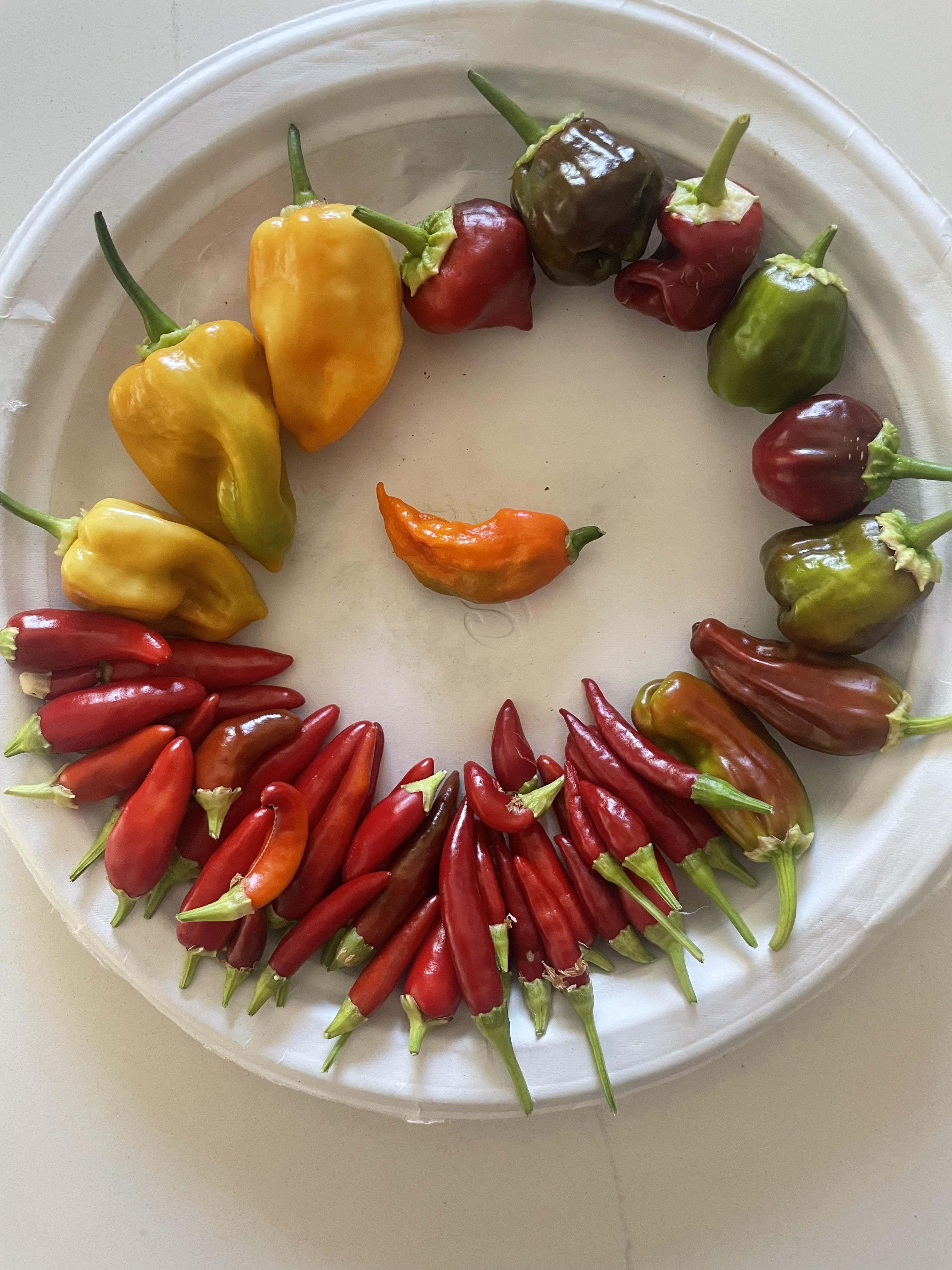 Thai chiles, habs, scotch bonnet, padron, & ghost in the middle