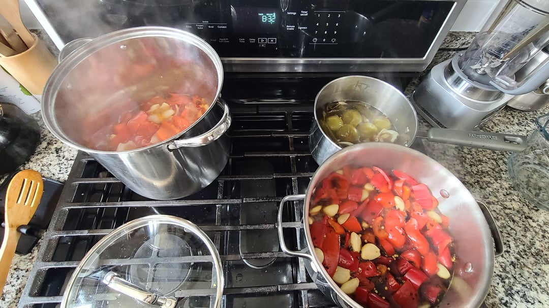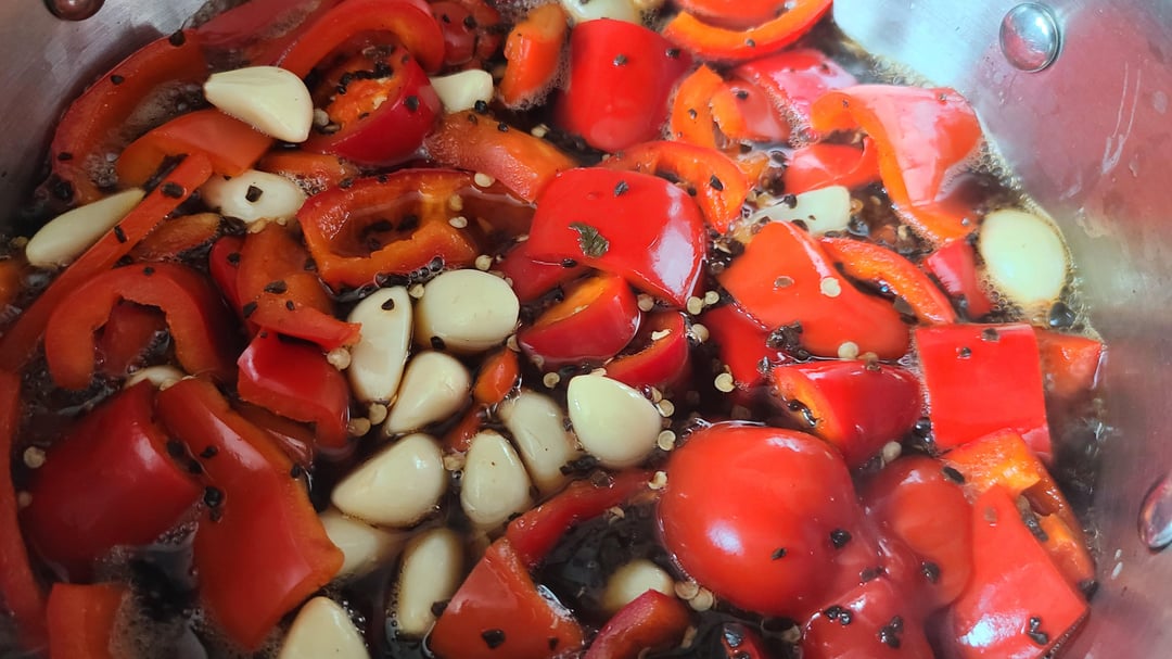Bottom right: 800g red bell, 800g red jalapeno, lots of garlic, fermented black garlic and of course, some other stuff.