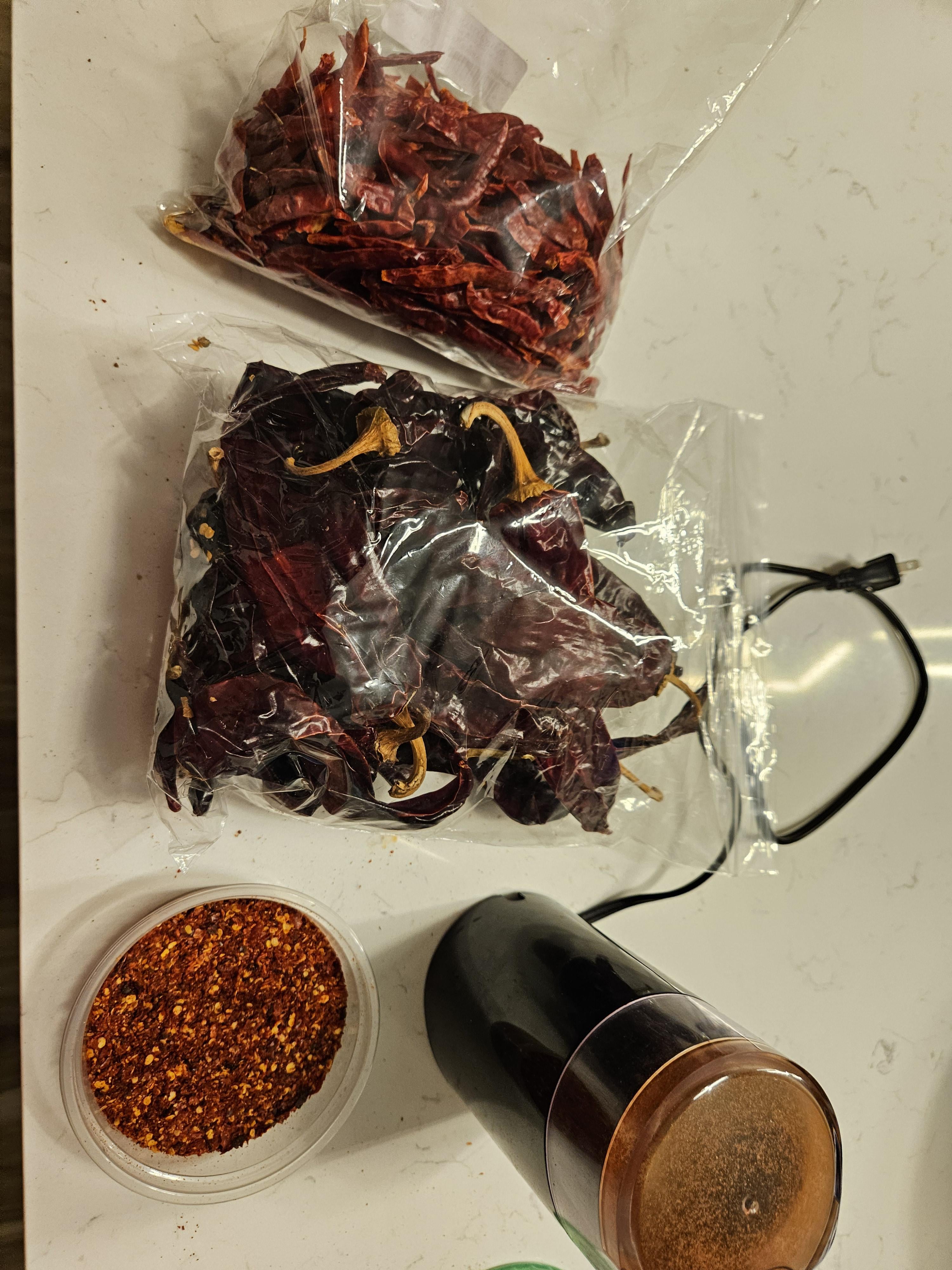 I buy peppers at the local Mexican market and make pepper blends. I have been blending peppers for a while but just started doing this. This is chile arbol and California chilis.by 3y350r3 Hot peppersPeppersSpicy Stuffsweet peppersWrite A CommentYou must be logged in to post a comment.