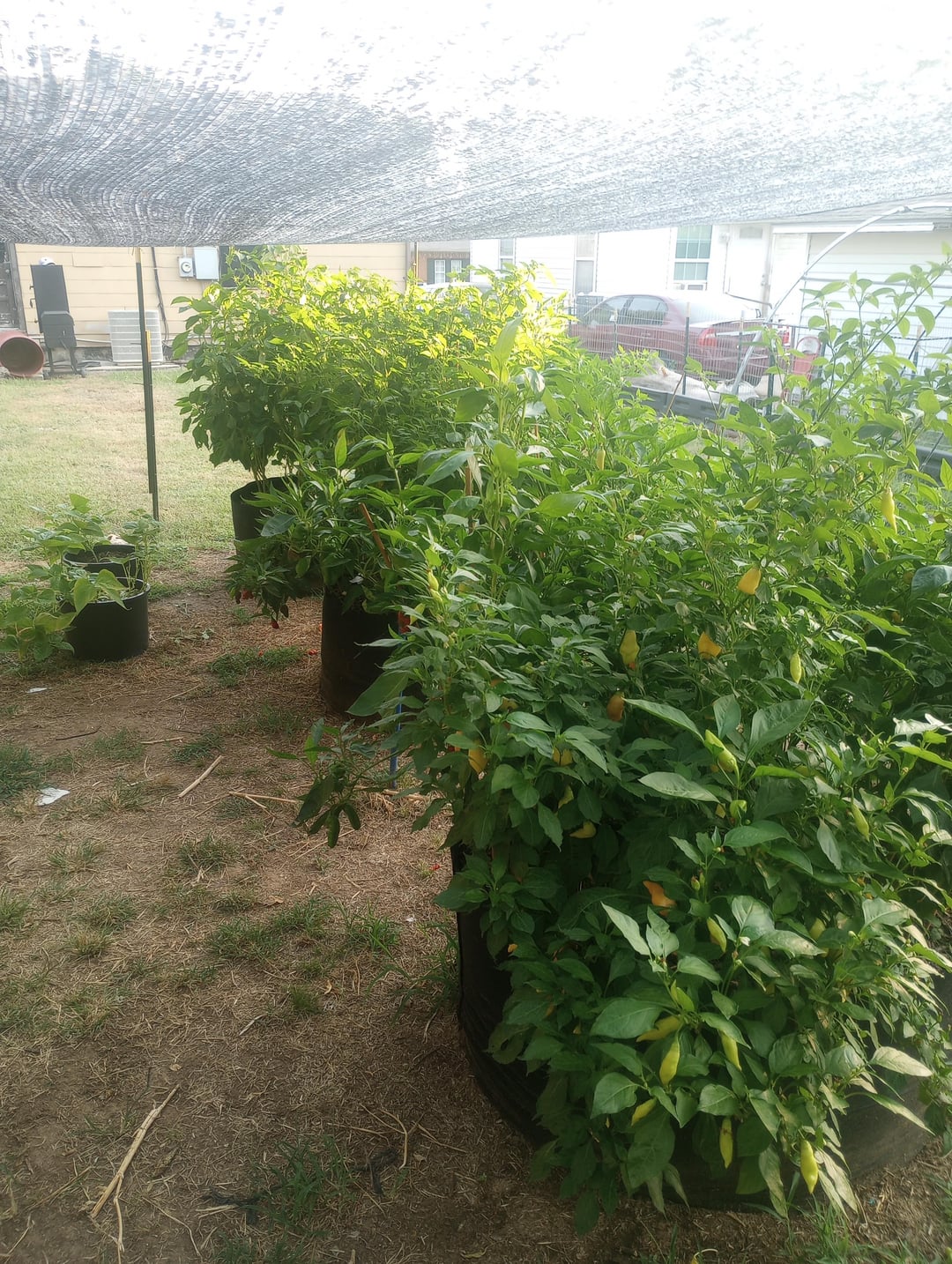 Last year I did all of my peppers in 10 gallon pots and even though my substrate was low porosity, I had to water twice a day. By the time mid July hit they had almost smoked out entirely with almost no pod production. I did furrows with flood irrigation the year before last and had about the same results.