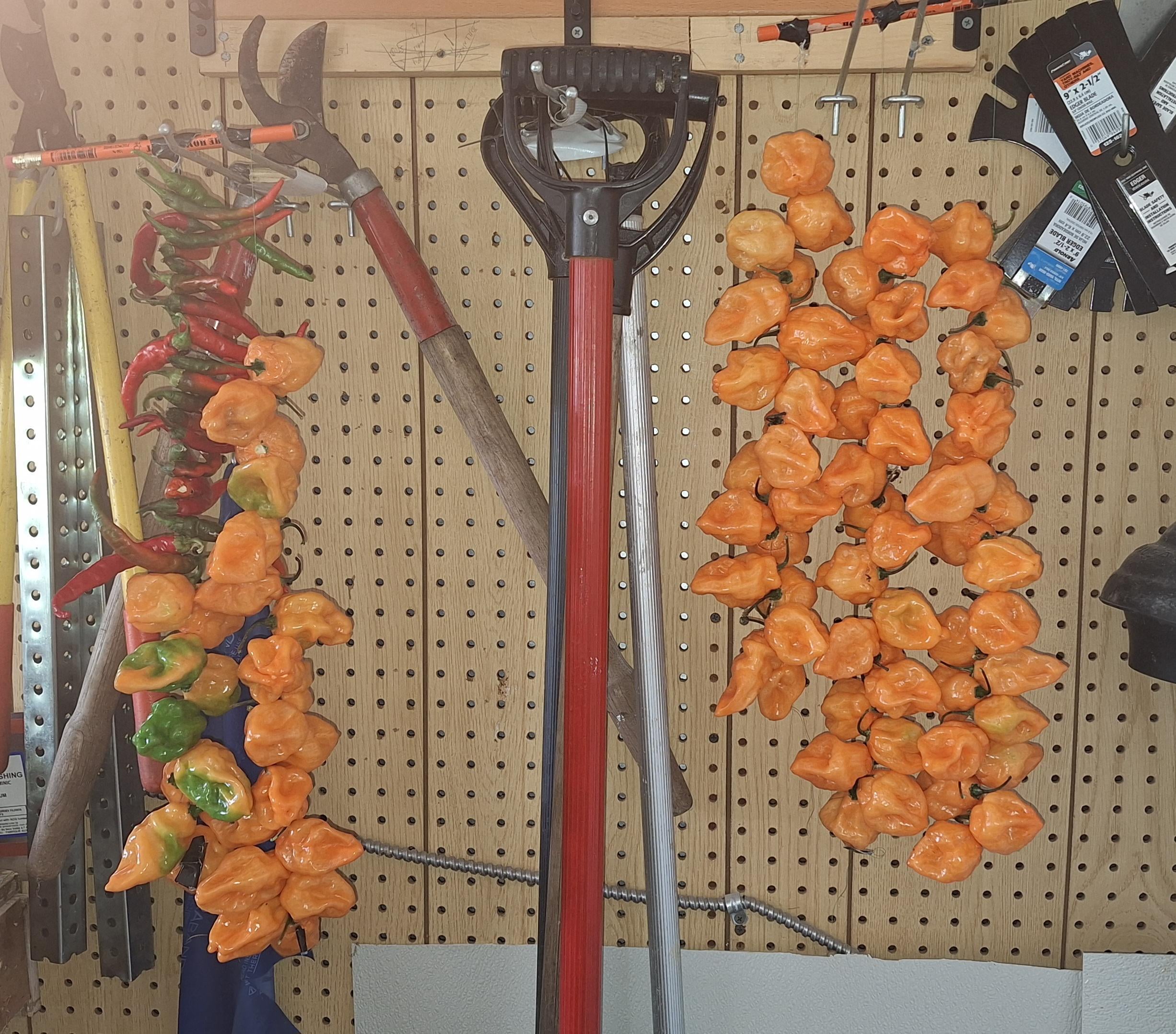 I've been harvesting my habaneros and long hots for a few weeks. I'm really in a productive time. This, is this mornings harvest. I have 10x that many on the plants. And many blossoms.