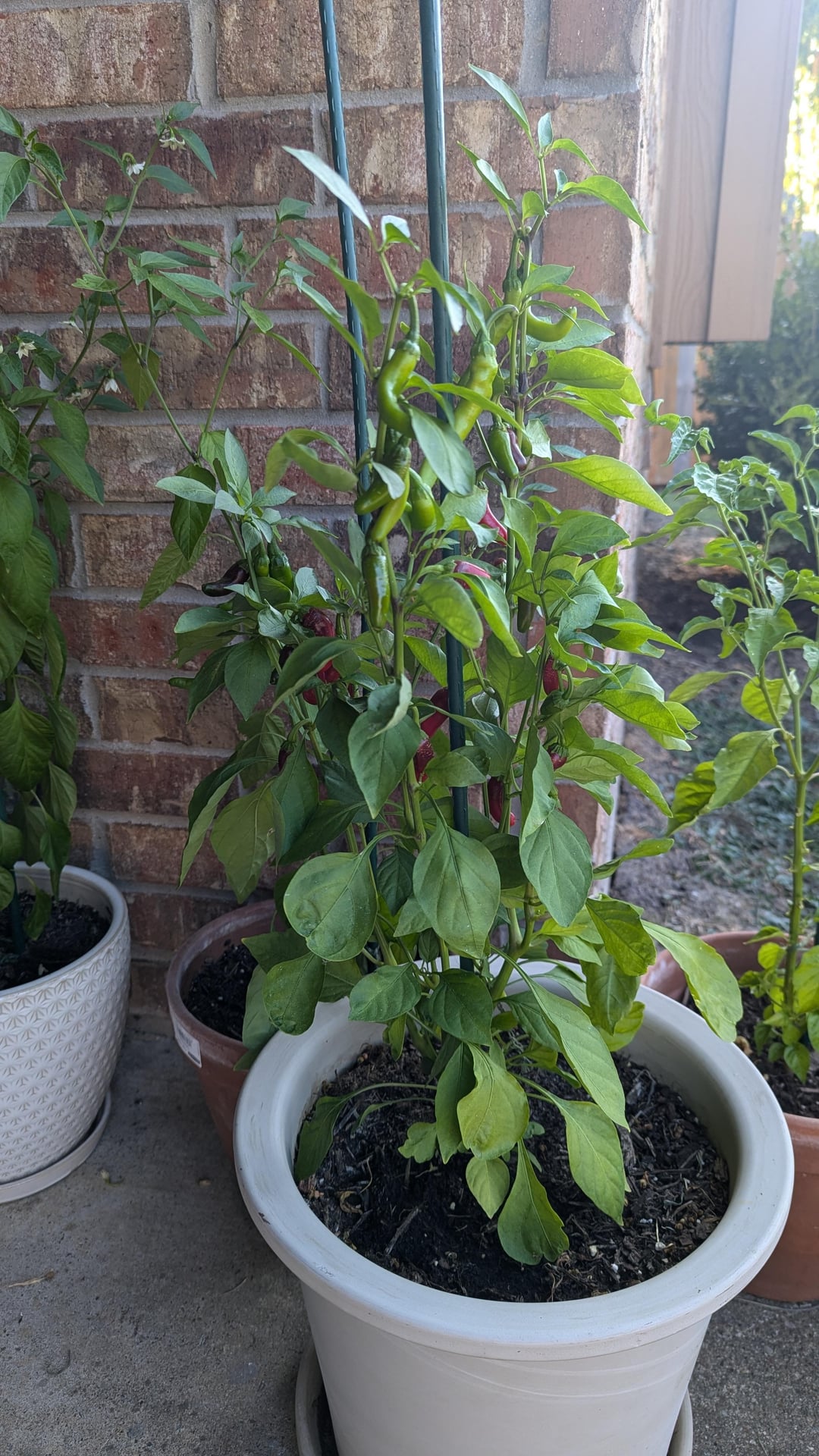 This is supposed to be cayenne, grown from seeds (I know it needs a bigger pot, just moved and working on that). The top seems like cayenne, long and thin, but the bottom that's ready to be harvested look totally different? Also is any of this cayenne? Lol