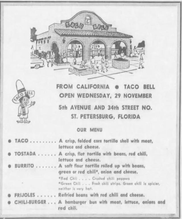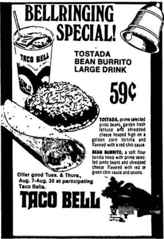 A Taco Bell Advertisement and Menu from the late 1960sby MemphisPali taco bellWrite A CommentYou must be logged in to post a comment.