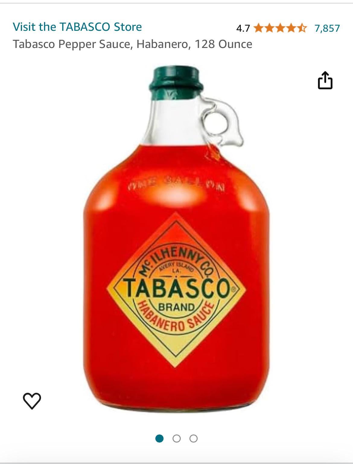 Recently I’ve been killing those little 2 oz bottles from the store, so I did a thing and ordered my own 128 oz jug of Tabasco habanero sauce.