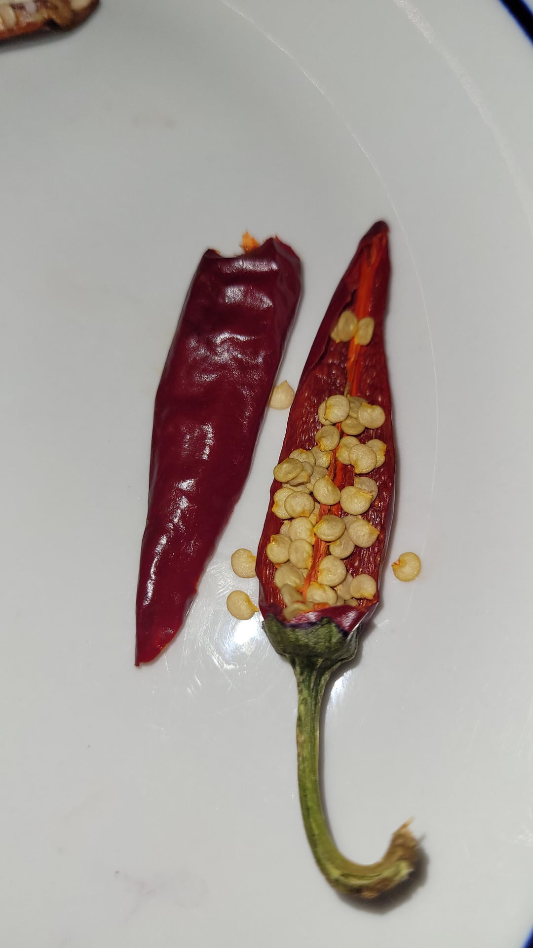 * Shoulder with no seeds or membrane: Really Spicy. This is making me cough and beginning to approach discomfort, but it's more like dancing on the edge of discomfort. This is what I consider a perfectly spiced pepper. It's making my nose run, eyes water, and I'm sucking in air to cool down my tongue. (I started giggling a little from the adrenaline response, and had to walk away to get water. I remember thinking the flavor was also fruity and slightly sweet, but the heat was distractingly intense so I couldn't think about the fruitiness enough at the time to describe it that way) 😂