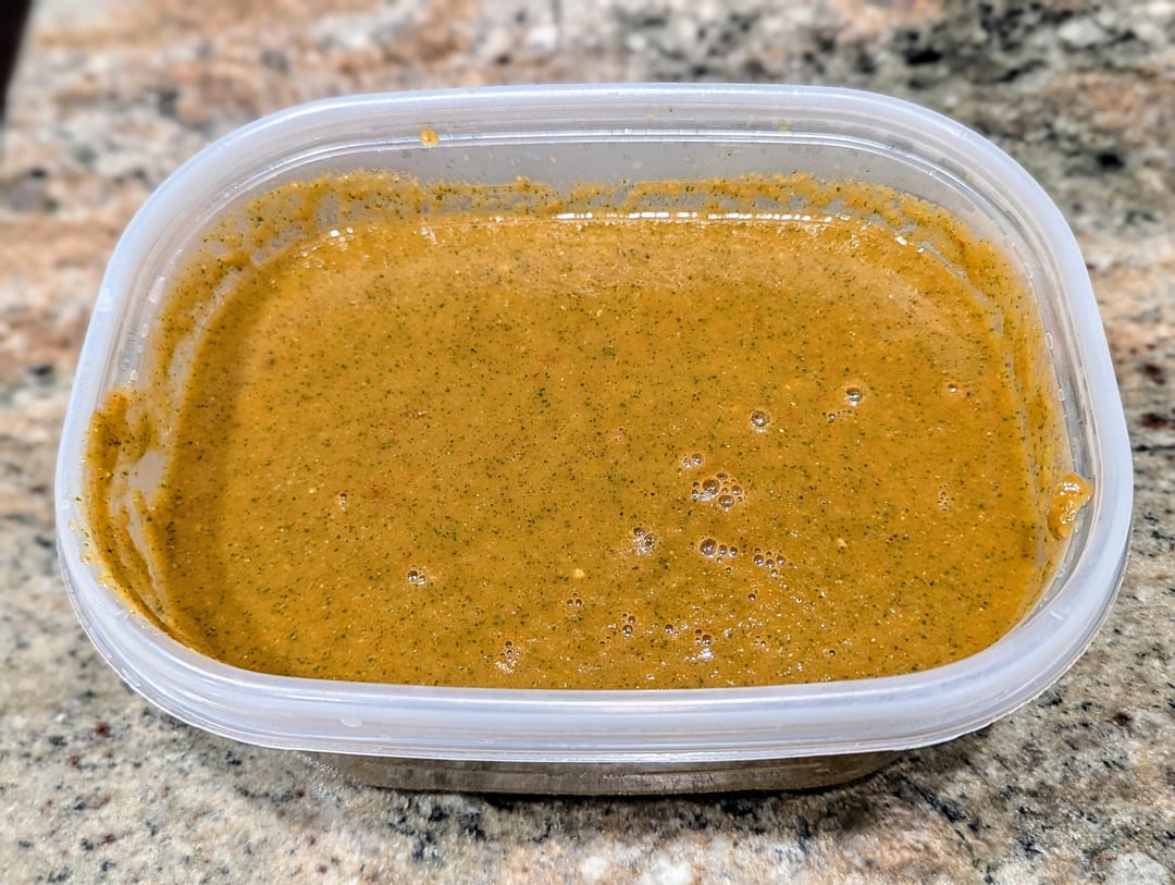 Tossed the chiles, tomatoes, onions, and unpeeled garlic cloves in canola oil then salted and peppered everything. Then I blistered and charred the chiles then removed the skins… Did the same thing with the tomatoes. Then, I broiled the onions with unpeeled garlic cloves (8 total… We love garlic) and removed the skins from the garlic… I added a cup of cold water to the blender and added everything including a handful of cilantro, more salt & pepper, lime juice, and the chipotle peppers and some of the adobo liquid and blended until smooth!