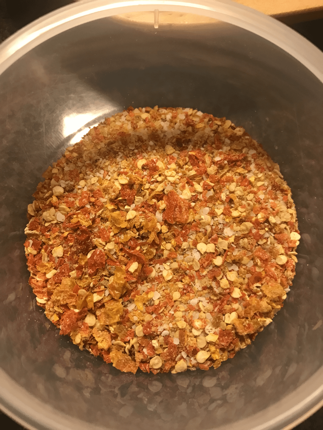 Turned a bunch of my Borg 9 Yellows, Quintishos, and Black Thais into a shake seasoning with some other ingredients. Dusted some wings with it – turned out great