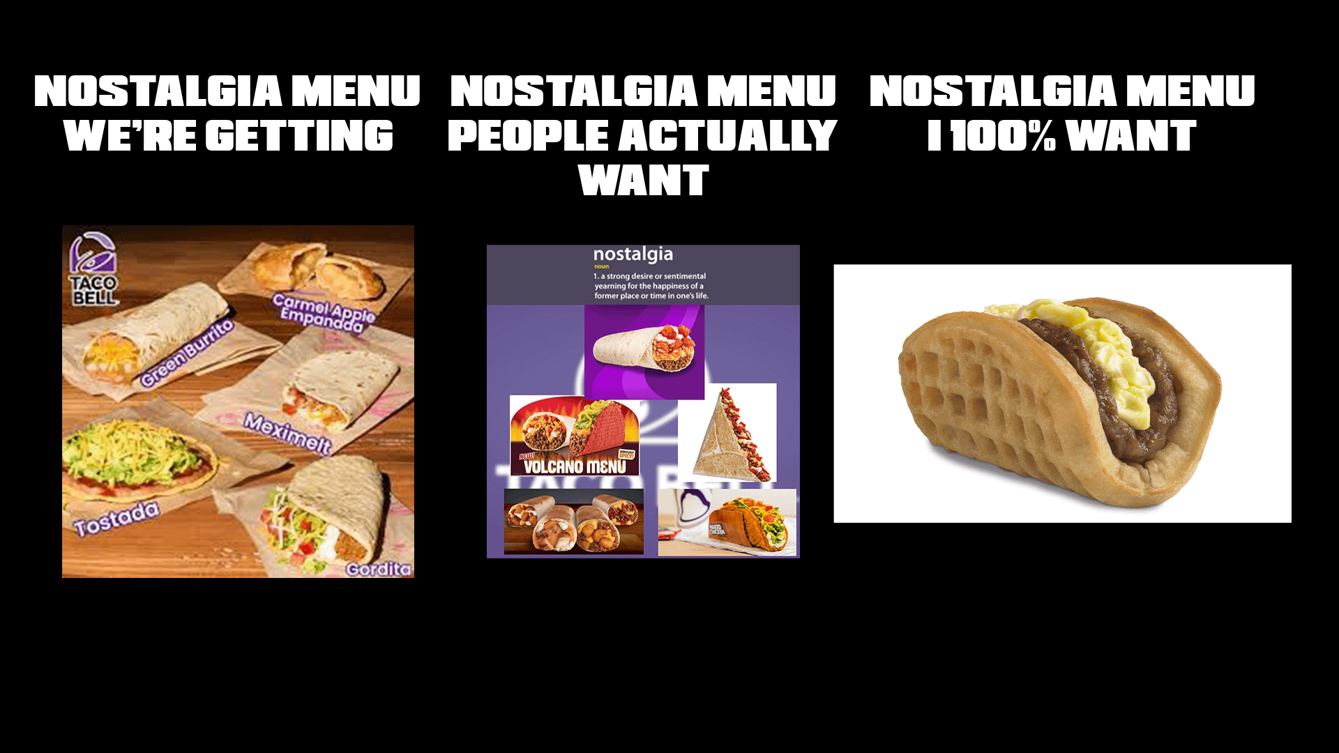 A Taco Bell Nostalgia Menu Meme I made in Photoshop Today. :3by SpaceboyCT taco bellWrite A CommentYou must be logged in to post a comment.