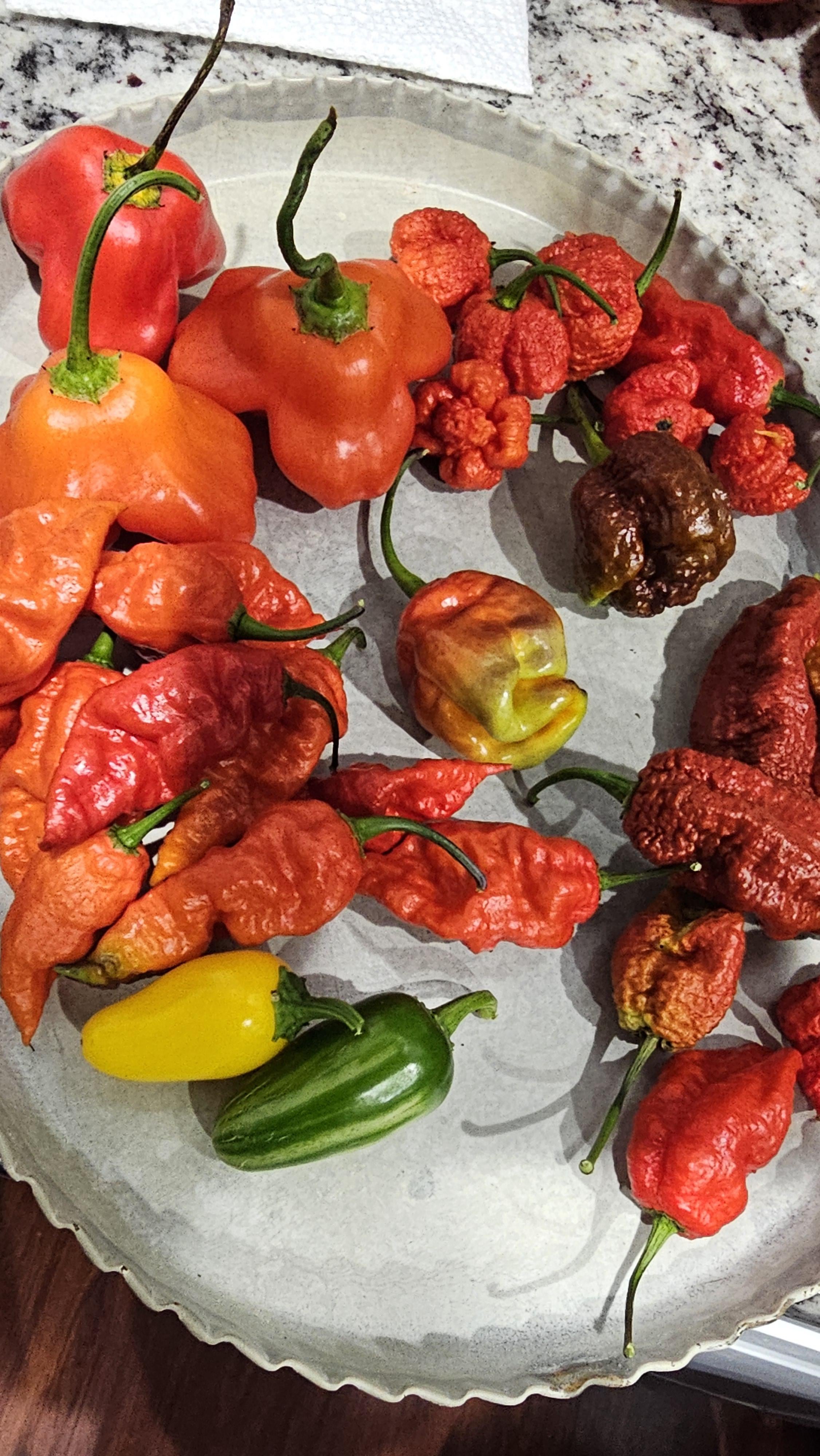 Little pepper harvest! Mad hatter, black panther, mattapeno, lemon spice jalapeno, moruga pink multi, red ghost, leviathan gnarly scorpion, Dragons breath and chocolate skunkby Used-Newspaper120 Hot peppersPeppersSpicy Stuffsweet peppersWrite A CommentYou must be logged in to post a comment.
