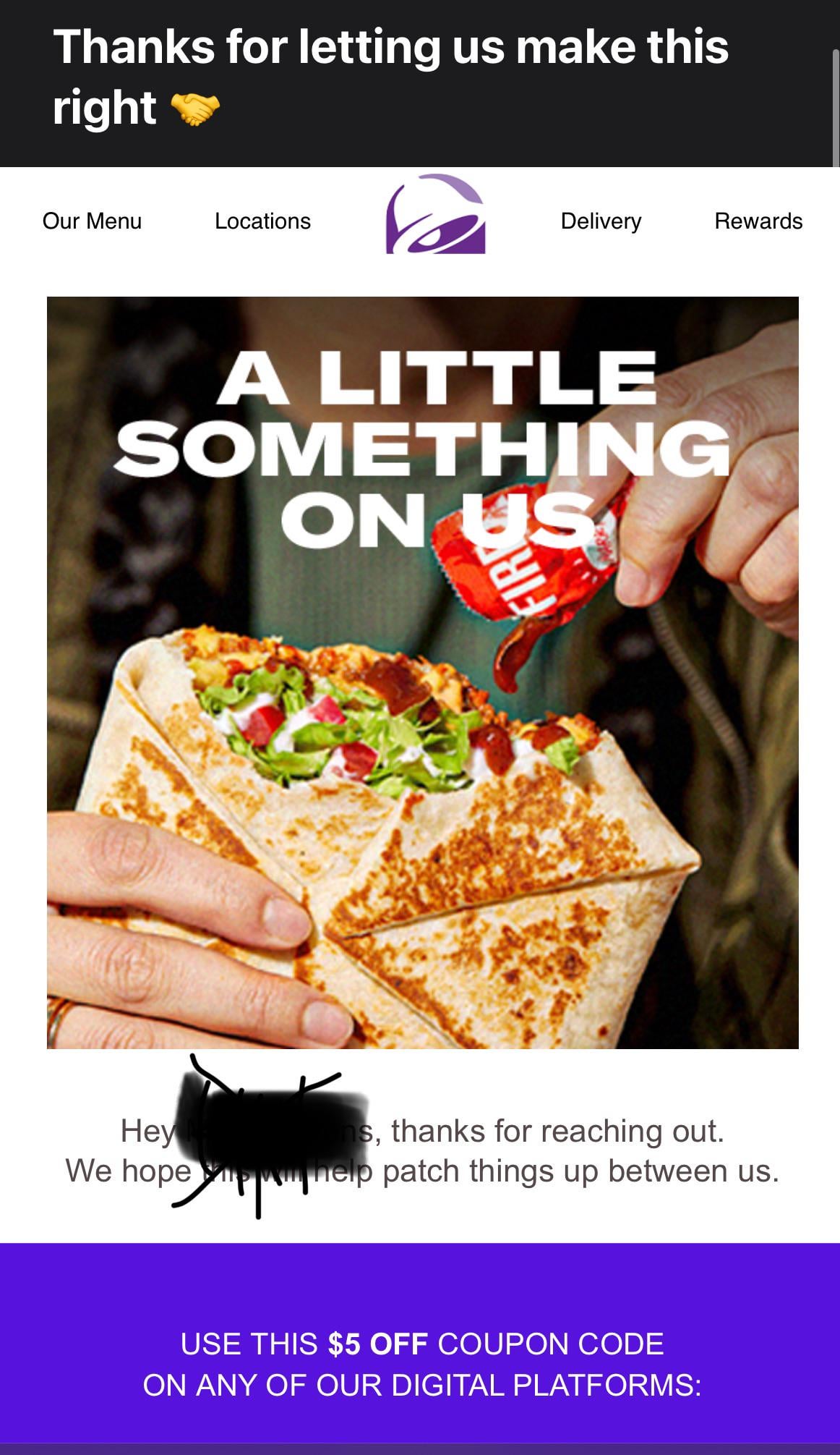 I didn’t complain to them, but I was irritated like many of you.Today, unexpectedly got this coupon.by BurnerBeenBurning taco bellWrite A CommentYou must be logged in to post a comment.