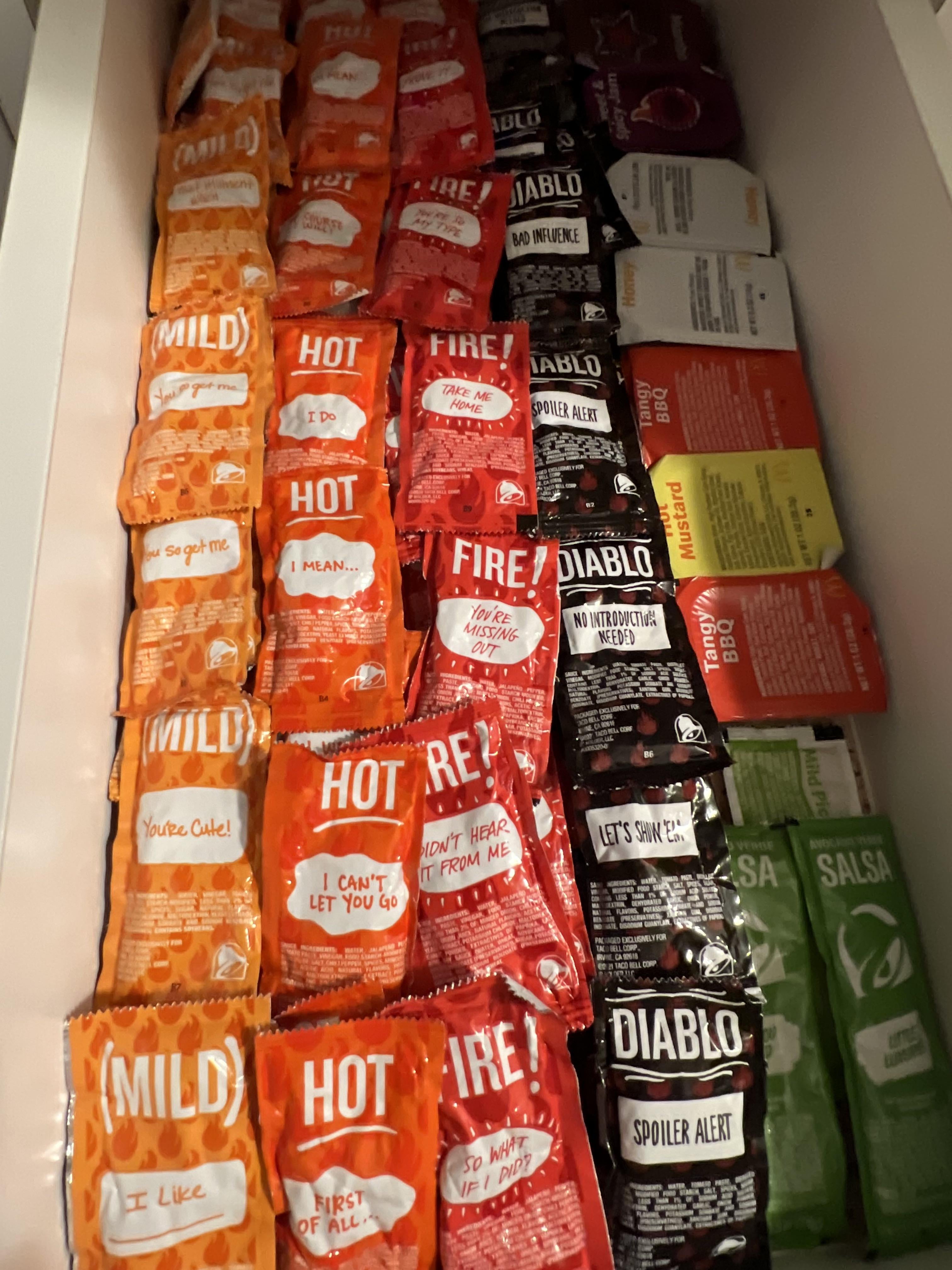 Bro I have a whole Taco Bell bag chock full to the top of every sauce you can imagine